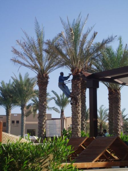 В отеле постоянно что-то чистят, приводят в порядок. Я долго не могла понять, откуда в Эмиратах дятлы? Подымашь голову - ба! Уход за пальмами в разгаре!