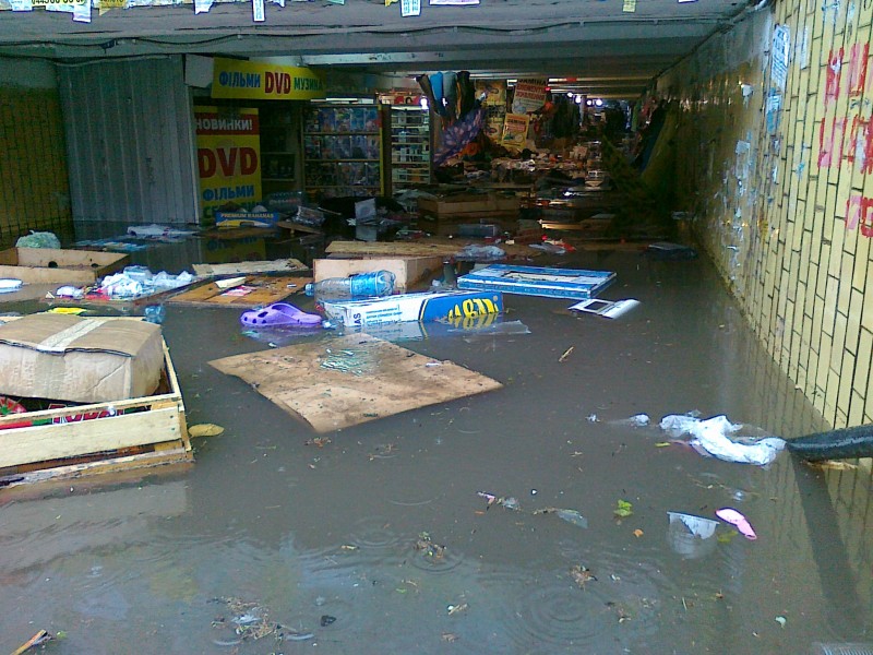 за що боролись, на те й напоролись. думаю, хто найбільше брав участь у засміченні дощової каналізації, яка зазвичай внизу біля сходів, так це самі торгівці. можливо, не ті, що в ролетах, але... та й взагалі той перехід - ехо 90-х. у мене, коли зрідка там доводиться пройти, завжди виникає бажання, щоб той перехід бетоном залили разом з усіма торговцями.