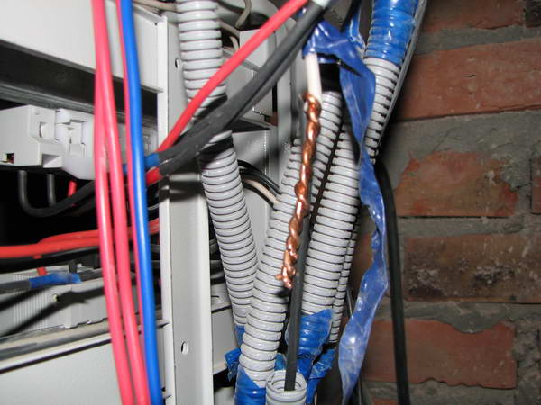 На фото как в одной из новостроек подключены квартиры, включая проводник РЕ, к этажным щитам.