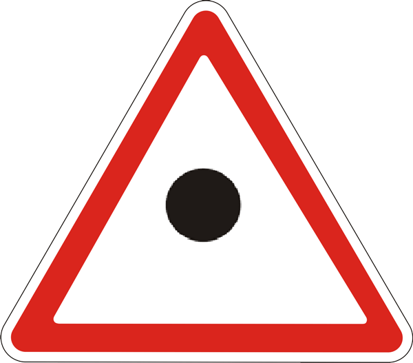 Щось я туплю . Перед перехрестям втулили знак - трикутник з чорною крапкою по центрі (типу як 1.39, але з чорним колом замість "!"), під ним - 7.21.1 і 7.21.3. В ПДР такого не знайшов. Чи то таки і є 1.39? Знак: