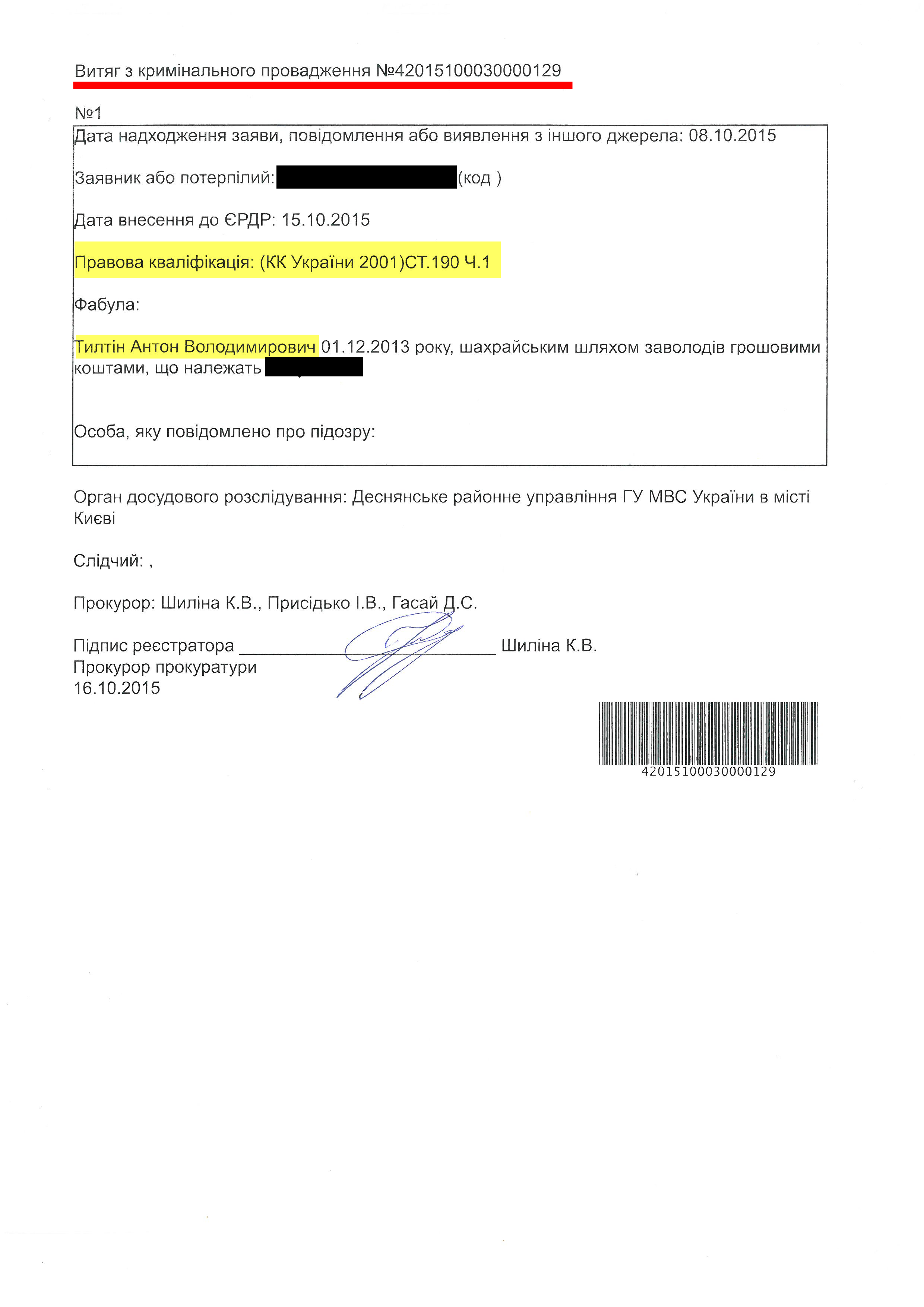 Шановный), ну во первых это тема не моя, и бездоказательно никого я не вешал ) я всего лишь посмотрел вытяг из ЕРДР,где четко прописано о том что открыто криминальное производство по статье 190.против тылтина.И прочьтите внимательно,где так же было прописано мной, а мошенник он или сепар??? , пусть уже решает сбу и соответствующие органы.