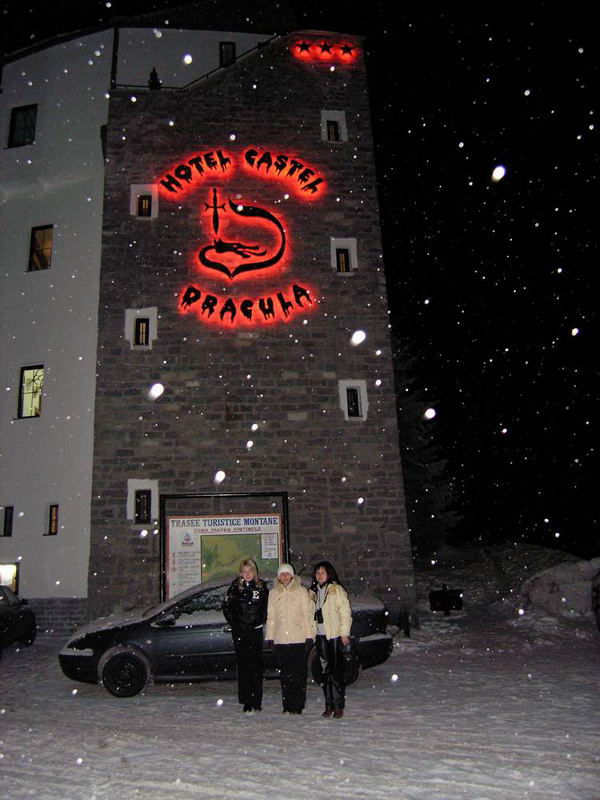 Утречком в воскресенье выдвинулись на Быстрицу (дорога из Тихуцы на Быстрицу - на прикрепленной фотке), за ней на Таргу-Муреш, и опять, как и 2 года назад, заезжаем отобедать в проверенный отличный ресторан в центре старого города Сигишоары, в дом где родился Влад Цепеш (Дракула). Въезд во внутренний двор цитадели Сигишоары сделали теперь платным (по $3 с авто), паркуемся... приходится немного отмахиваться от почему-то навязчивых в этот раз цыганчат (в прошлый раз они были не такими буйными), а сейчас прям чуть не открывают тебе двери в машине, чтоб ты побыстрее вышел и одарил их чем-то, из понятных нам слов - только фраза "уно эвро" , приходится немного уговаривать друзей, тех что на другой машине, чтоб все-таки не боялись и выходили из авто - им было попервах немного стремновато и боязно оставлять авто, но цыганчата достатчно радушные, хотят общения и абсолютно безвредны (я им обычно даю пакетик недопитого сока - они рады и такому)... Дворик в цитадели небольшой, все рядом - вот он памятник Владу, в 50м ресторан (дом где он родился), и еще 50м - вход на башню (она же местный исторический музей), виды с нее по-прежнему чудесны, появились таблички с указанием направлений на основные города мира и с указанием расстояний (есть и Киев, смотрим фотку - всего 624км по-прямой!) В ресторане обслужиает все тот же обходительный, манерный и прекрасно говорящий по-английски официант в одежде 19-го века. Вкуснота и скорость приготовления блюд - на высоте, как и во время предидущих визитов Выдвигаем дальше на Брашов, въехавши в который везде видны указатели на курортный поселок Пояна-Брашов. 15км по легкому серпантину и мы въезжаем в эту горнолыжную мекку Румынии. Первым делом едем к подъемникам дабы начать поиск отелей поближе к ним. Самые козырные отели (возле подъемников) - Мируна, Эскалад... цены за дабл в них 90-100евро/ (однако?!), да и нету такого, чтоб были свободны сразу 4 номера (отели эти небольшие) - сказалось то, что школьные каникулы еще не закончились, посему много туристов с детьми (коих мы потом во множестве наблюдали на легких "зеленых" горках и подъемниках). Продвигаясь дальше от подъемников мы проверили порядка 10-12 отелей, самым "бюджетным" оказался "Олимпик" ($30 за дабл, но полностью был занят спортсменами, условия/мебель тоже достаточно спартанские по сравнению с другими отелями). Были и такие, что стоят по 140-150евро (Пятра Маре, Миорица), в такую же немалую цену оказался случайно обнаруженный на отшибе новый стильный отель Замок Дракулы, помимо жестокой цены, от него еще й далече добираться до подъемников и ресторанчиков-колыб, но зато - практически в лесу После 2-х часов неспешного поиска остановились на очень хорошем варианте - Отель Роял 4*, что в переводе "с аглицкого" - королевский ... в нем таки по-королевски в апартаментах и в коридорах везде на полах ковры, имеется сауна ($6 в час вне завсимости от колличества посетителей, круглосуточно), комната с настольным теннисом. Отель небольшой, может на номеров 20. Сторговаться удалось на цене 60евро (или 75дол) за дабл с завтраком, который был достаточным и более-менее нормальным по выбору шведского стола, его хватало многим из нас, чтоб потом кататься на лыжах без обеда . Есть в отеле и комната-пивная с 3-мя металическими бочками с местным вином, которое мы и попробовали в первый же вечер (легкое десертное, пьется почти каск вода).