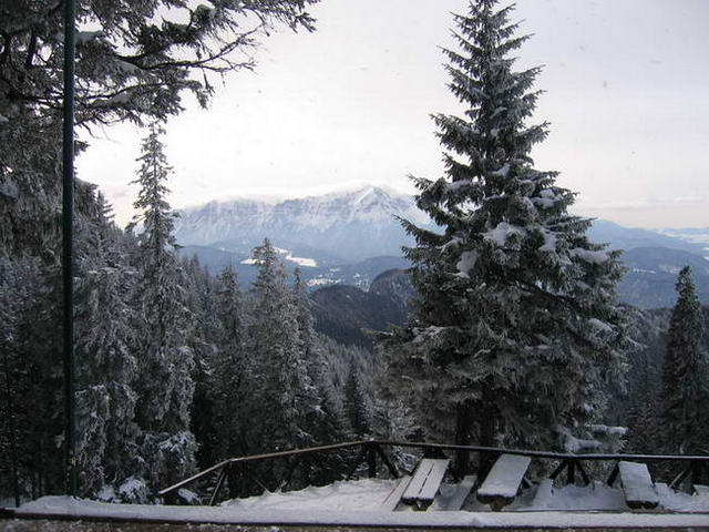 от верхней станции гондол - здесь можно и плотно пообедать, и выпить разливного пива, глитвейна (вин-фирт по-румынски)... есть также несколько номеров, здесь ведь настоящий горный приют