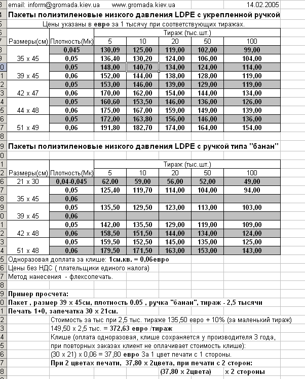 А я хотел бы себе штампануть 2000 шт пакетов для колёс, но дешевле 75 коп/шт, поскольку за такую цену можно в рознице взять....