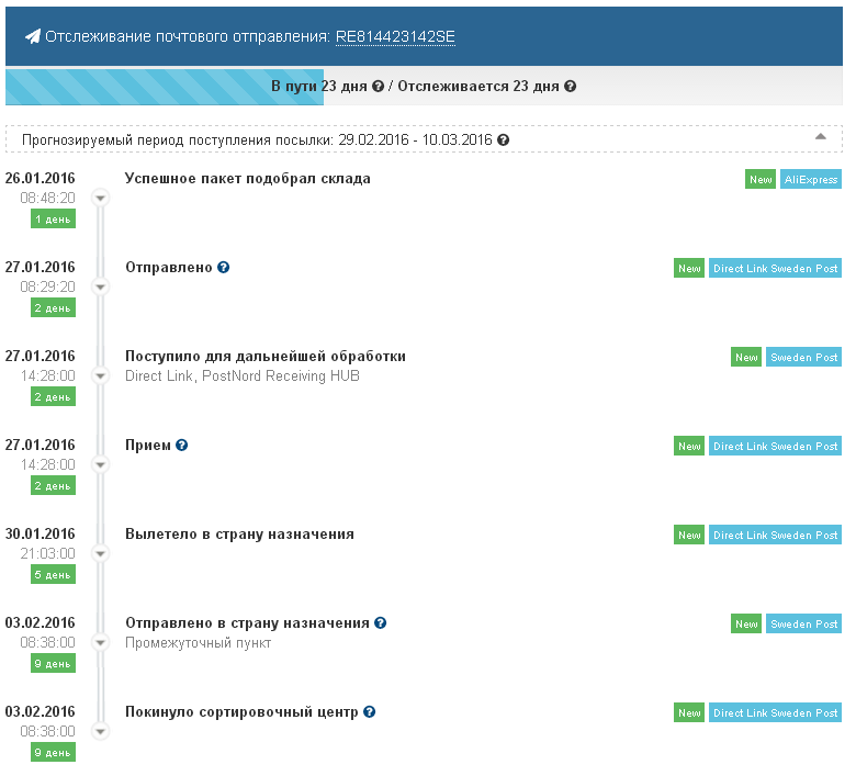 Добрый вечер. заказал телефон с али впервые. все было ок, но щас товар неотслеживается 2 недели. стоит - ли переживать??? написал продавцу он ответил :Hey friend, thanks for your remind, maybe the china holiday, almost post and company stop work, and the information not update. i will keep attention of the package, please wait more days for it . thanks for your understand. ссылка на телефон : http://ru.aliexpress.com/item/Asus-ZenFo...archweb201556_3,searchweb201644_1_505_506_503_504_301_502_10001_10002_10016_10017_10010_10005_10006_10011_10003_10004_10009_401_10007_10008,searchweb201560_8,searchweb1451318400_-1,searchweb1451318411_6449&btsid=cfb29e30-a22a-4de9-bbbe-818d8254137c телефон продавец отправил почтой швеции (трек номер : RE814423142SE) что показывает 17трек : 2016-02-03 08:38 Order departed from sorting hub 2016-01-30 21:03 Order departed on flight from origin 2016-01-27 14:28 Item received for processing 2016-01-27 08:29 Order dispatched Стот-ли мне открывать спор с продавцом? и что подскажете делать? ПОМОГИТЕ!!!!!!!!!!