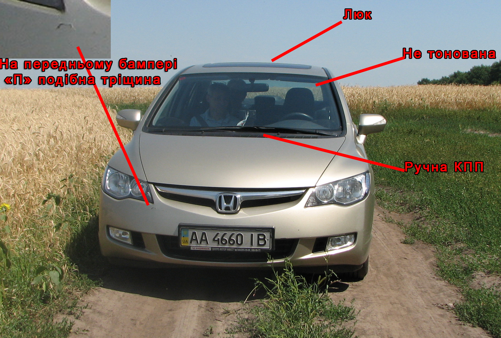 передньому бампері є "П" подібна тріщина.