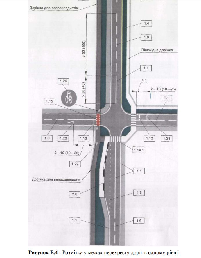 А фото, как (и только так!) обозначается "Розмітка у межах перехрестя доріг в одному рівні" - ниже