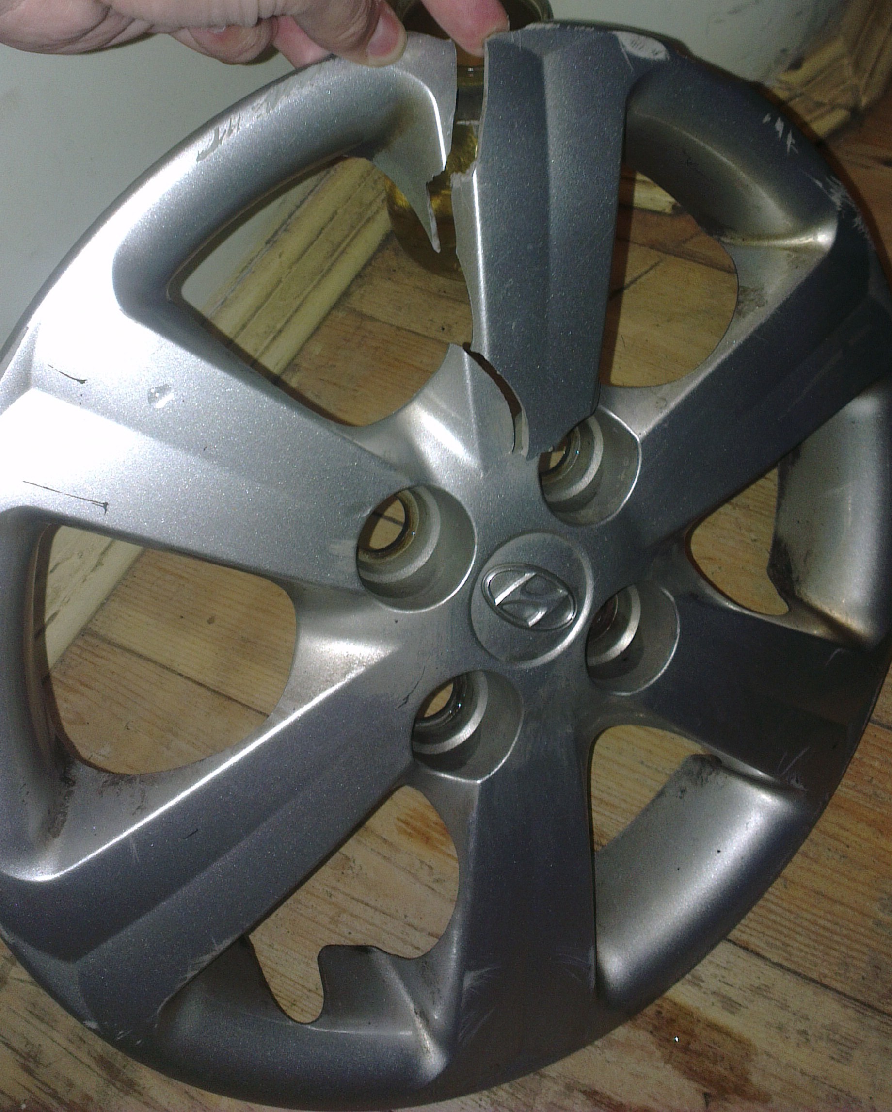 Доброго времени суток. Собственно имеется родной колпак от хюндай, после встречи с бровкой ему малость поплохело. Посоветуйте как и чем можно починить, заклеить, запаять и т.д. Самый дешевый новый нашёл за 900 грн., отдавать столько денег за кусок пластмассы не готов ни морально ни физически...