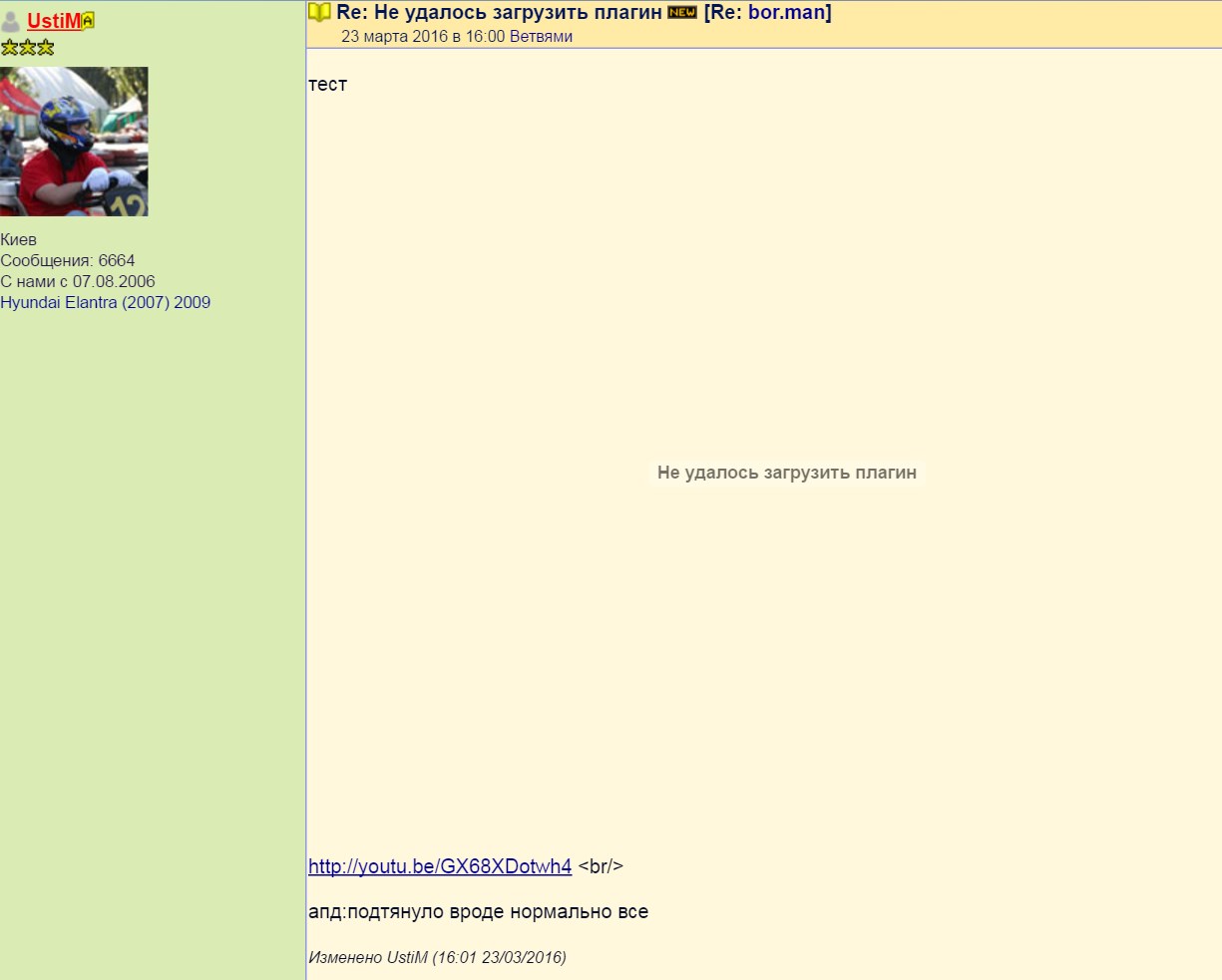 Все ссылки на видео в форуме так отображаются. Пробовал сам вставлять, тот же результат. Что это? А еще долго грузится сам форум при переключениях. Началось недавно.