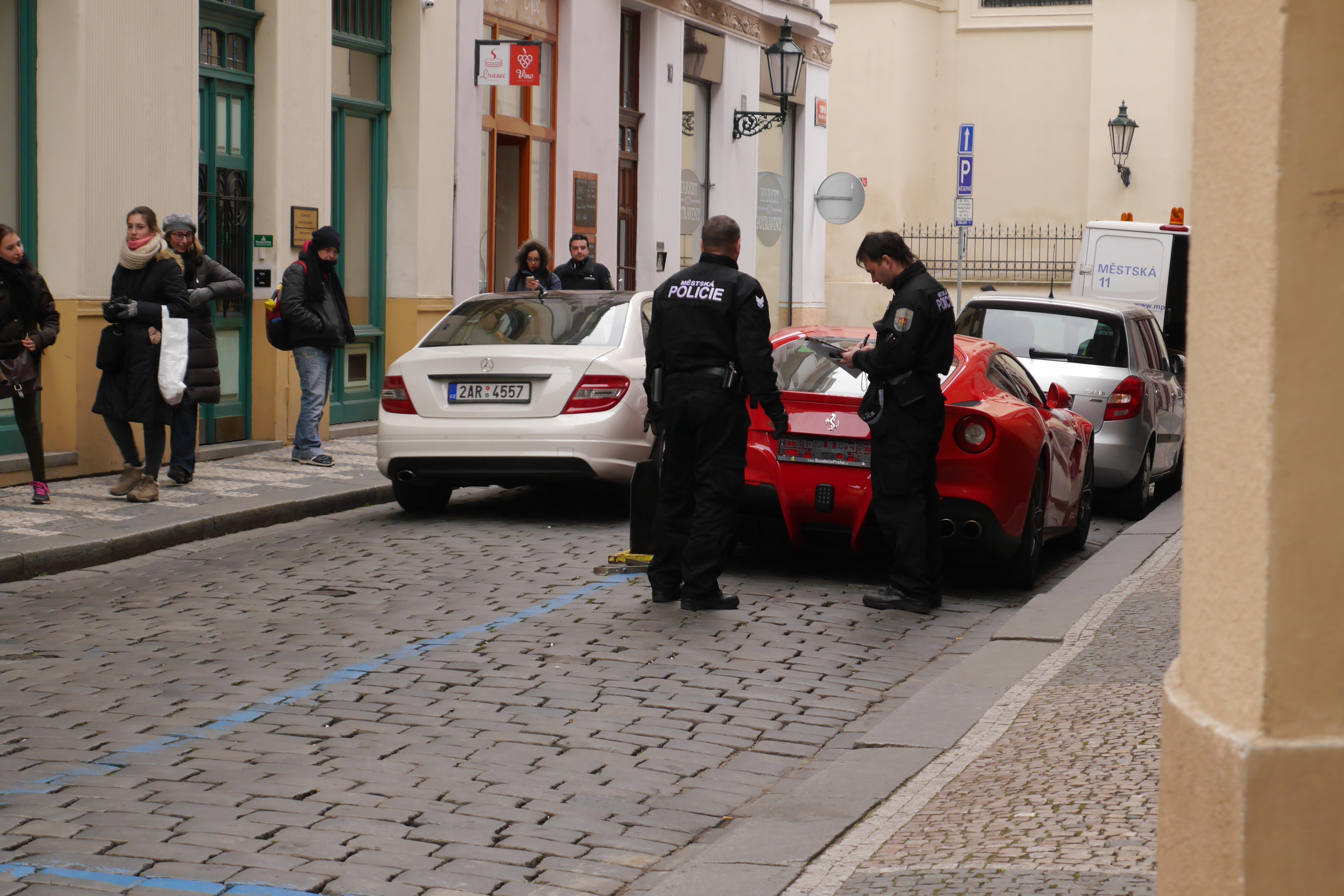 А еще на авто-тему: вот как ставят блокираторы в Праге на нулевую Феррари.