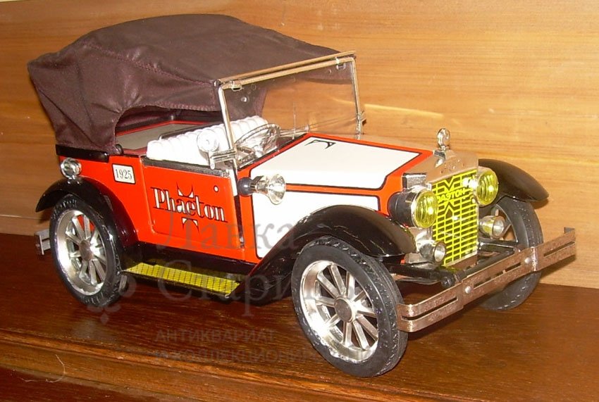 Потрапила мені до рук одна модель, що за вона і чи варта вона взагалі якоїсь цінності незрозуміло. Масштаб її близько 1/10, рік випуску 1982, з особливостей те, що вона рухається в перед і назад за допомогою живлення від батарейок, також повертаються колеса разом з кермом та світяться передні фари під час руху, складний тент. Може хтось підкаже яка її цінність і у якій сумі вона визначається? Фото додаю, взято з інтернету, власні будуть вечером: