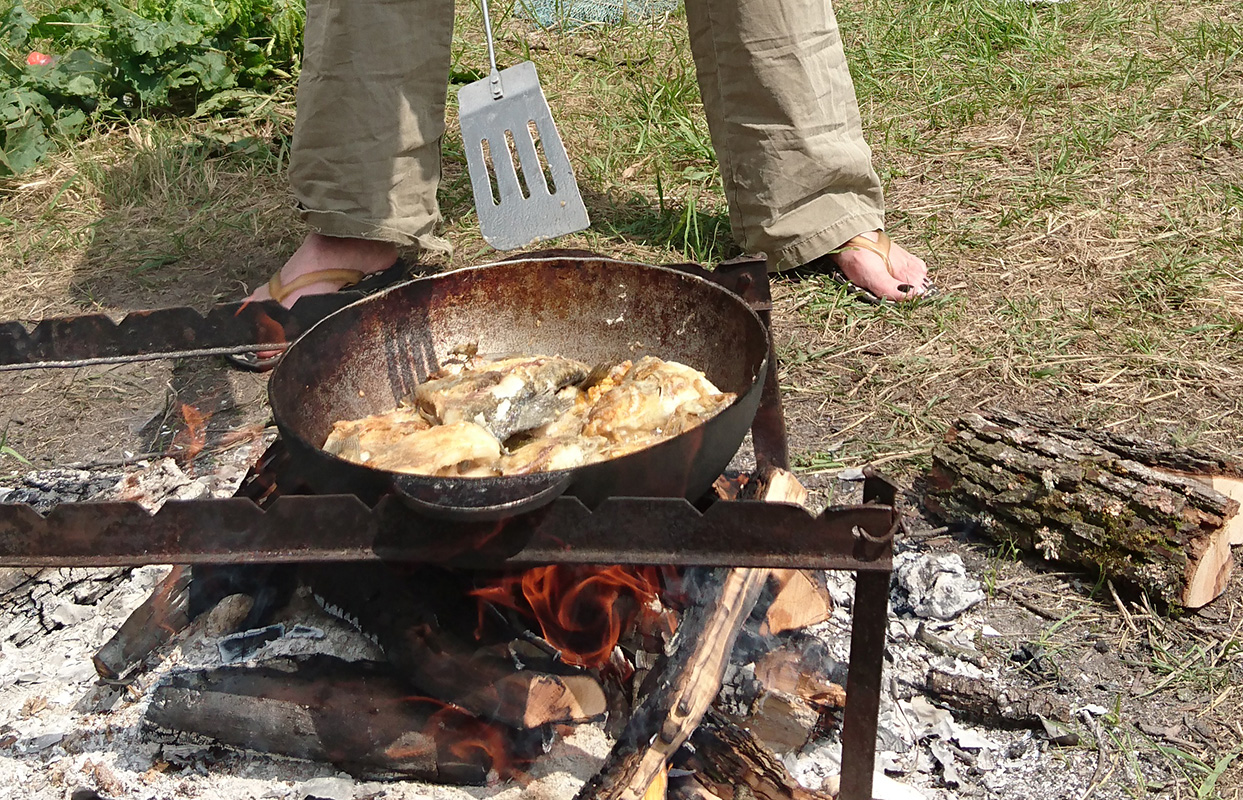 вот пожалуйста, жарим рыбку дровишки из груши, несколько лет как молнией разбита, твердая, сухая! подпиливаем каждый год по чуть-чуть а на ужин картофанчик с мяском