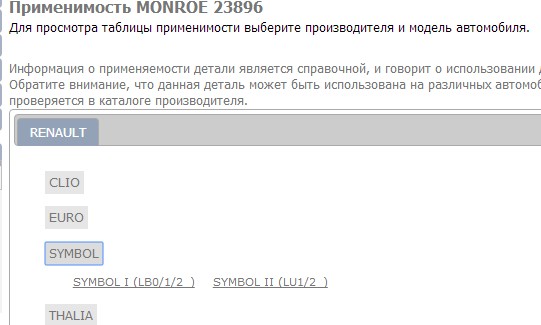 Monroe 23896 по каталогу не предназначены для Renault Symbol 2011 г.в.