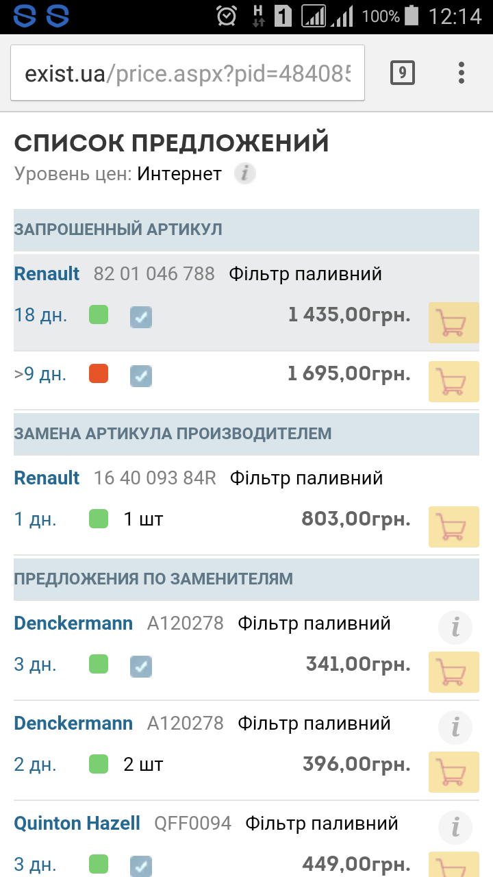 Все не так! 1. - фильтр, что в наряде - на экзисте 789 грн. (на вашем скриншоте 803 грн)(сверьте артикулы) Кто сказал, что они ставят оригинал? Я же писал выше, что ставят какоето лайно. Это раньше Кнехт ставили. 2. на арме масло в канистрах, 5 л - 1200 грн загнули (в наряде масло из бочки, типа они отвечают - но я очкую чтото) ну както так.