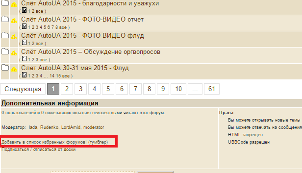 Спочатку, заходиш в один із форумів (не тему), наприклад "Autoua клуб". Листаєш в самий низ. Находиш "добавить в список избранных форумов! (тумблер)". Натискаєш. І так по всіх темах, що цікавлять.