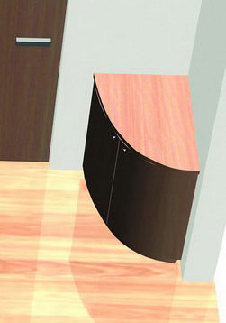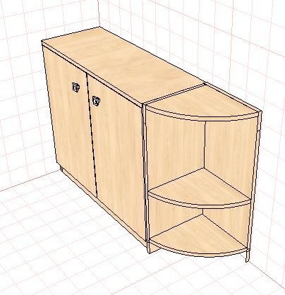 По радиусному фасаду, если от наличника до стены есть 300мм, то заказывать стандартный на 300мм, с того же материала фасада заказывать боковую дверку и столешку (потому как просто гнутый фасад станет по деньгам на 200грн дешевле чем к нему еще и боковину и столешку)