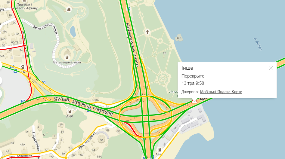 в феврале 14 года, когда начались расстрелы на майдане - этот сервис обозначил "перекрытие мостов"... На самом деле все ехало отлично. Я его тогда же и удалил.