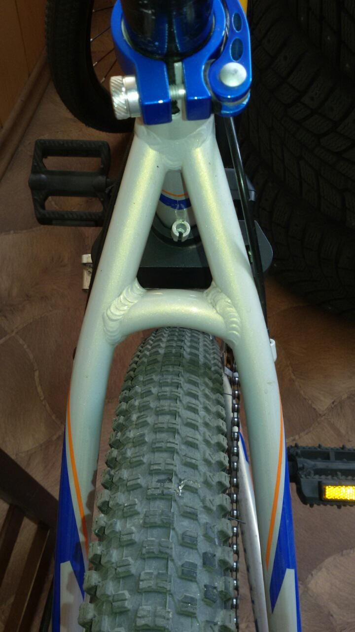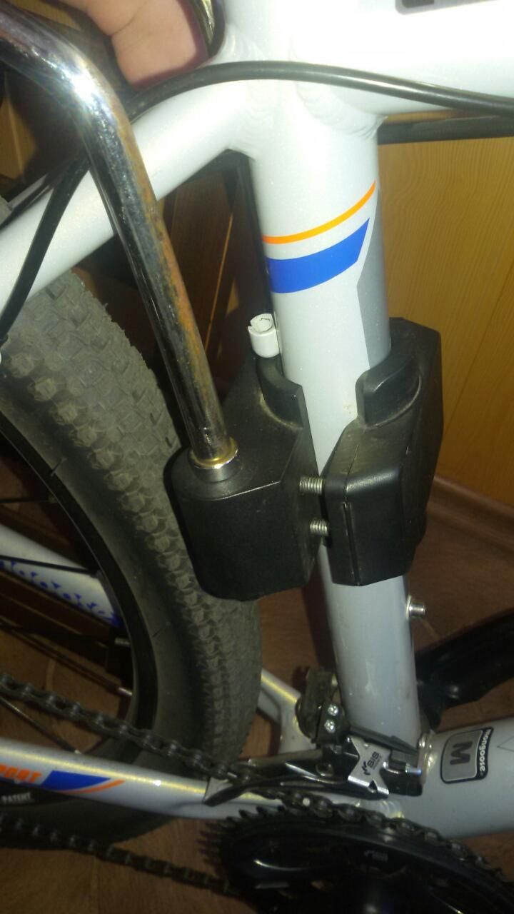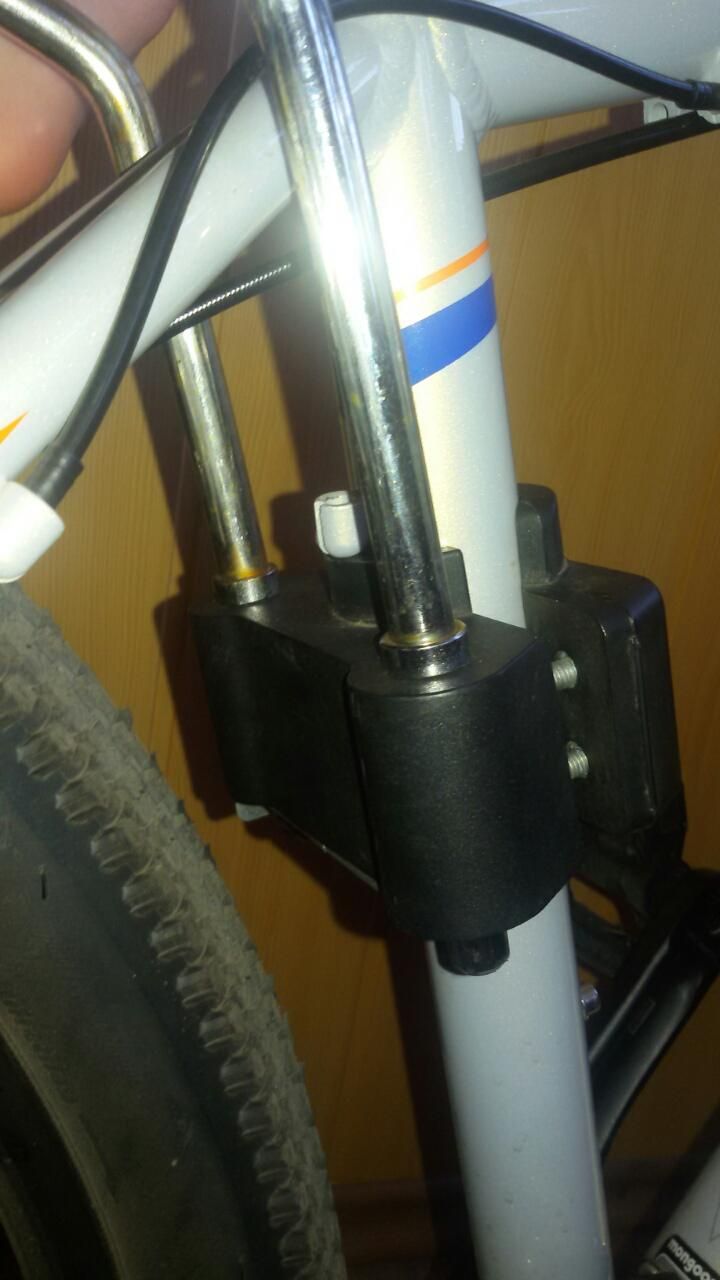 Куплено ребенку велокресло с замком на раму под седлом. К сожалению, в замке нет отверстия для троса переднего переключателя, соответственно сейчас или замок - или трос. Что можно придумать в этой ситуации? Мне пока видится так: просверлить отверстие в перемычке рамы (фото 3), и пустить трос сквозь него. Хотя сверлить не хочется, конечно. Еще знаю, что бывают упоры на хомутах, но в продаже у нас не вижу, и не уверен, что тут подойдет. И еще вычитал, что можно поставить рубашку троса цельную, неразрезную - может, этот вариант подойдет? Буду благодарен за мысли!