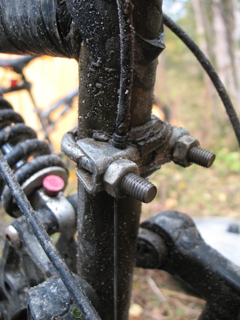 Нужна нижняя подводка троса. Я выточил бы новый упор из куска алюминия который имел бы плоскость и припаял бы или на заклёпки поставил возле рулевого стакана.