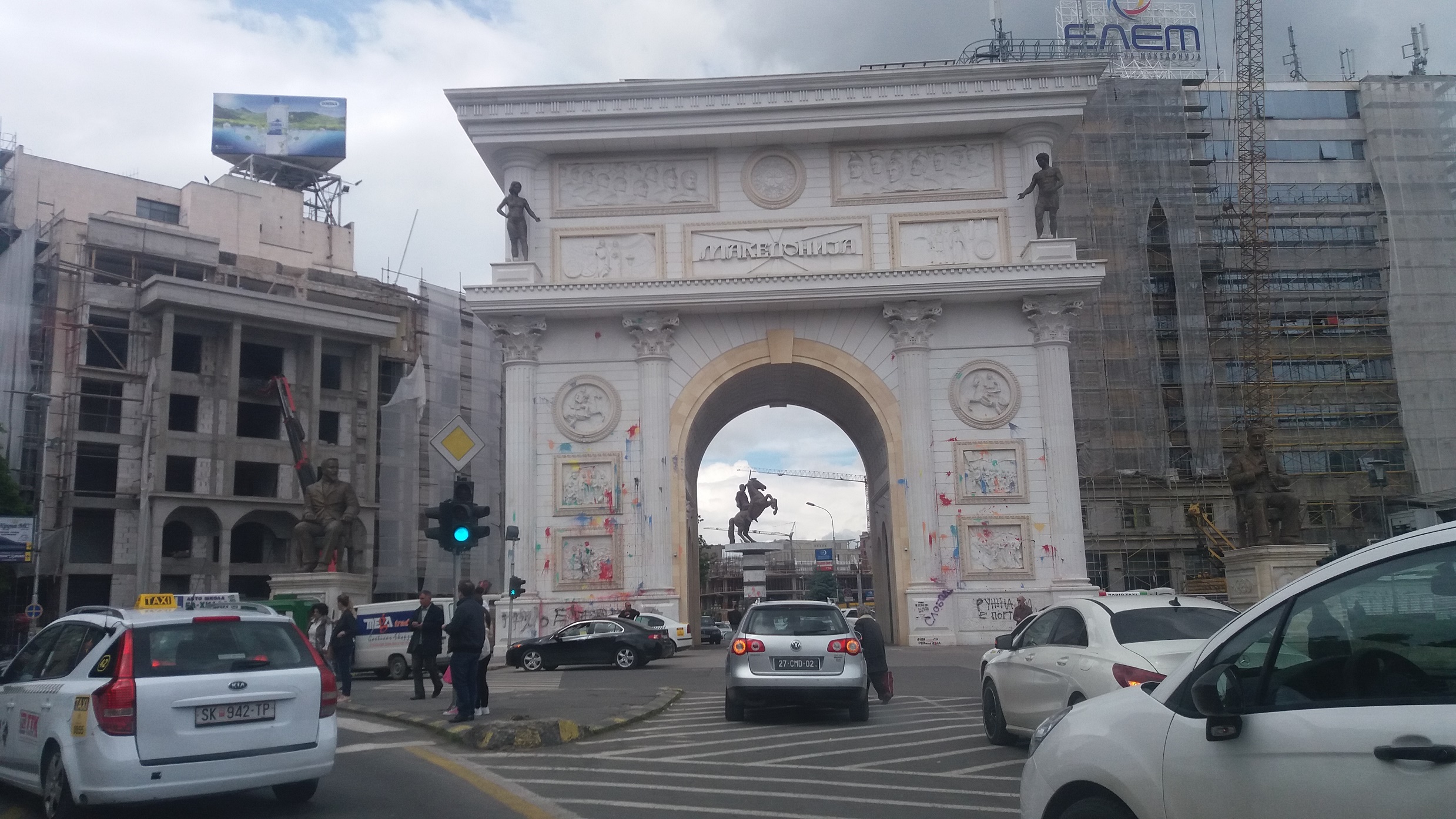 Триумфальная арка Скопье, естественно, «подправленная» пятнами краски. Правда, к чему приурочено создание этой арки я не узнавал.