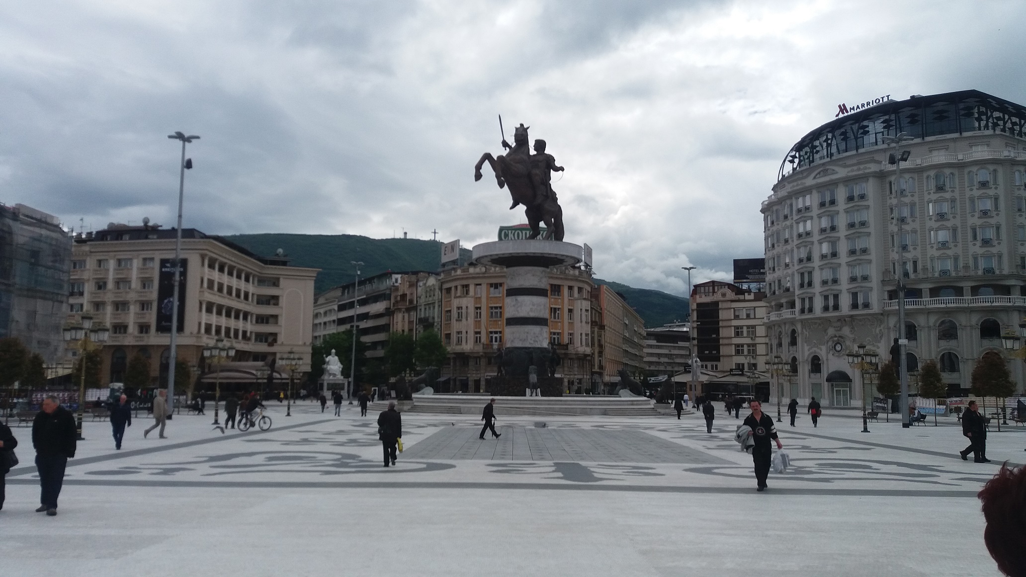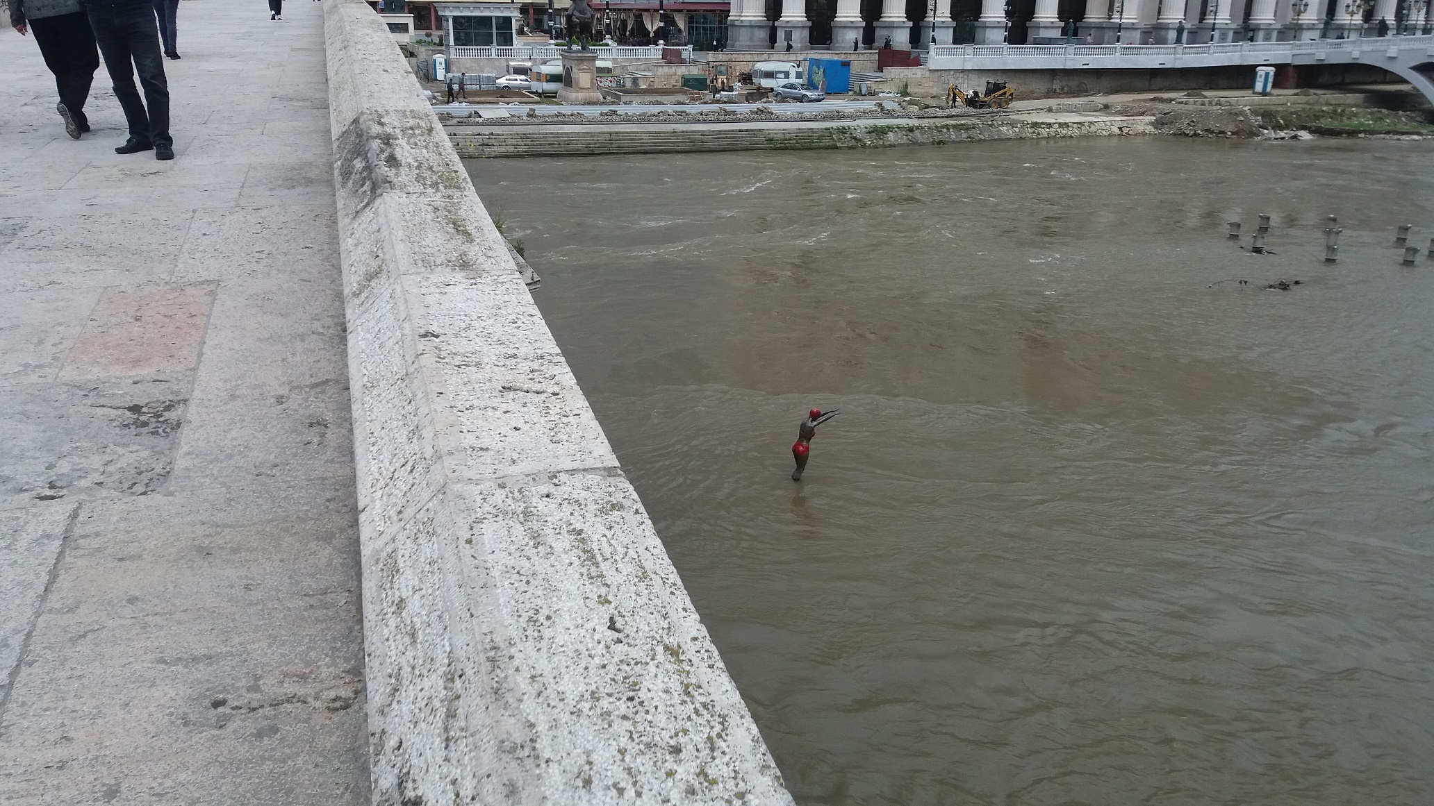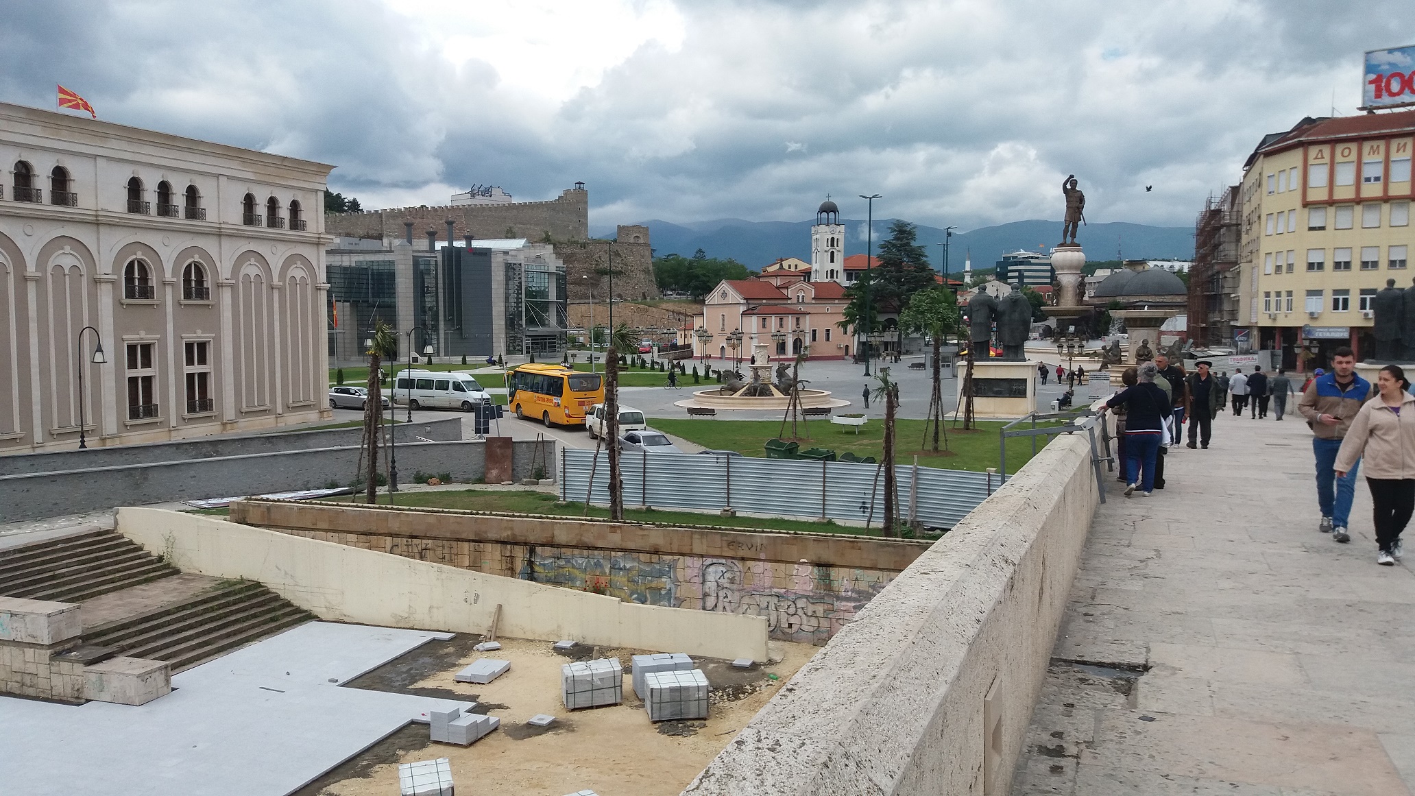 Минут через двадцать после блуждания по городу заехали в центр и остановились на стоянке (платной, но не платили ), поменяли денег для покупки соляры и прогулялись. Кругом в центре сплошное строительство. И, как уже многими отмечалось – памятники, в особенности Александру Македонскому, здесь его просто какой-то культ. Времени на более пристальное исследование македонской столицы не было, поэтому ограничились сугубо несколькими центральными улицами, площадями и древним каменным мостом, через бурную реку Вардар.