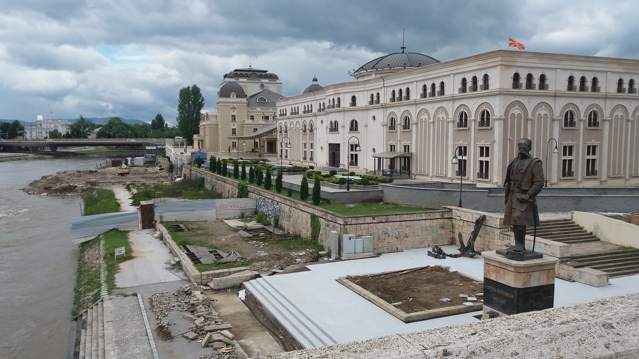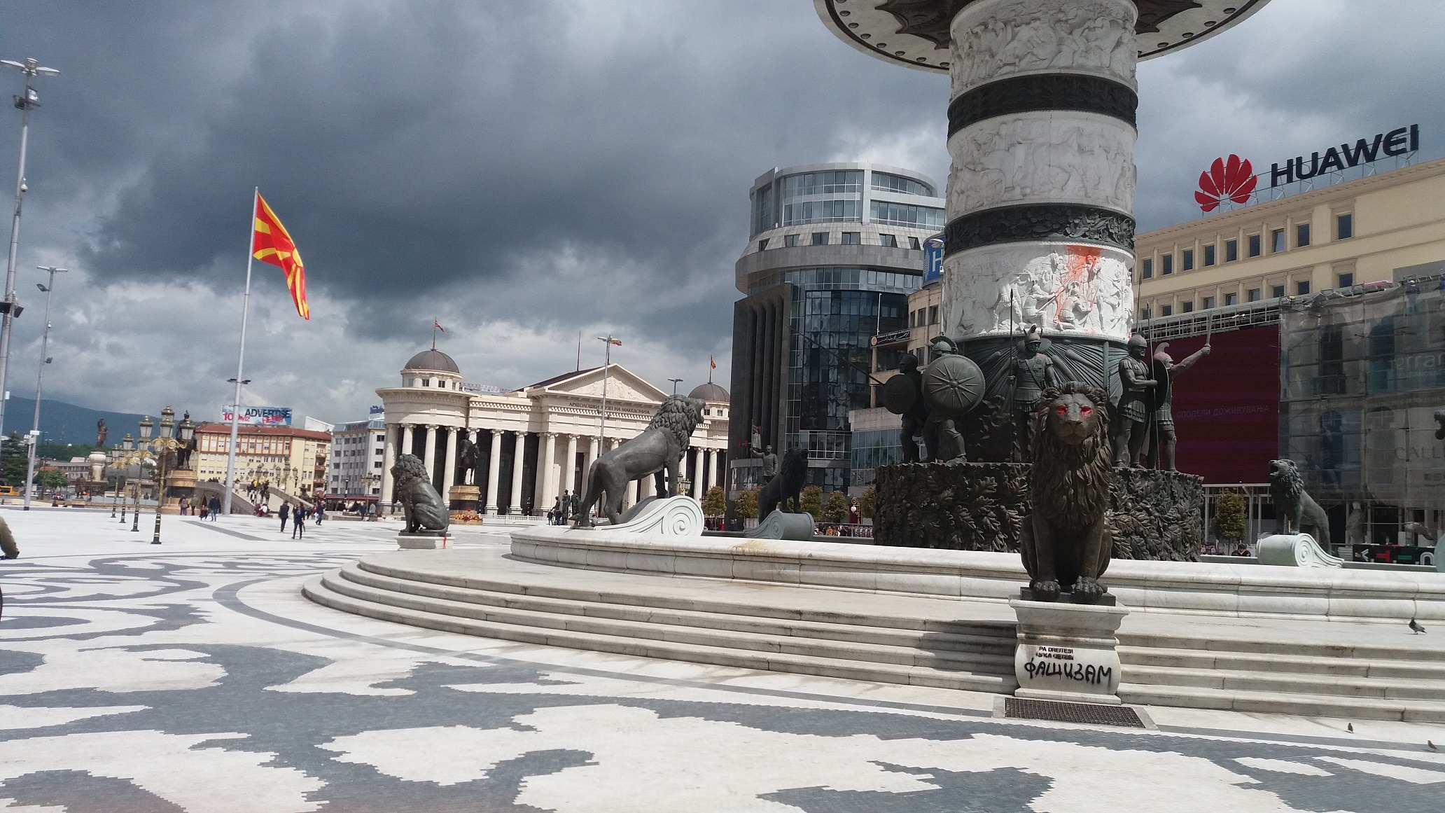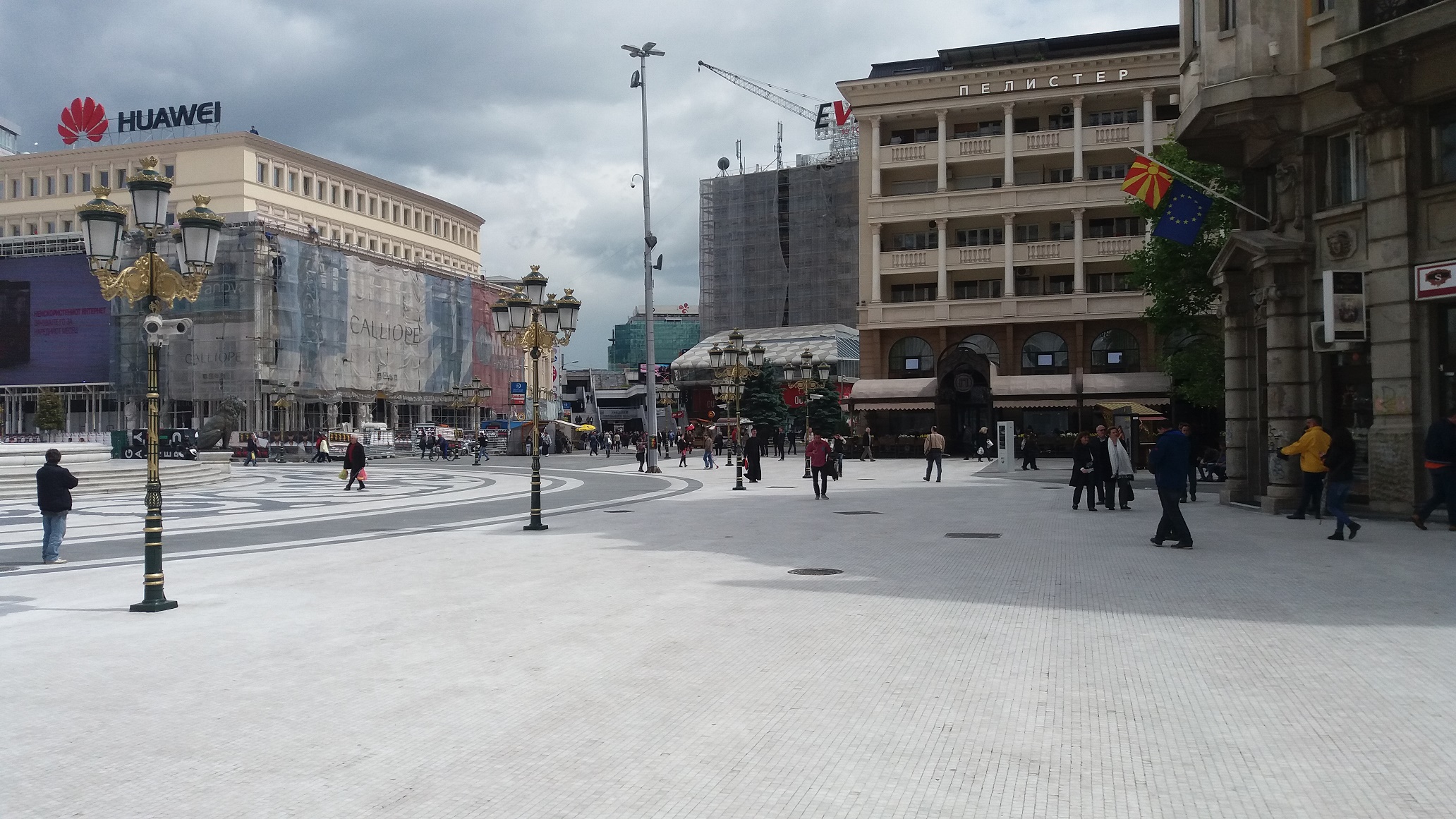 Минут через двадцать после блуждания по городу заехали в центр и остановились на стоянке (платной, но не платили ), поменяли денег для покупки соляры и прогулялись. Кругом в центре сплошное строительство. И, как уже многими отмечалось – памятники, в особенности Александру Македонскому, здесь его просто какой-то культ. Времени на более пристальное исследование македонской столицы не было, поэтому ограничились сугубо несколькими центральными улицами, площадями и древним каменным мостом, через бурную реку Вардар.