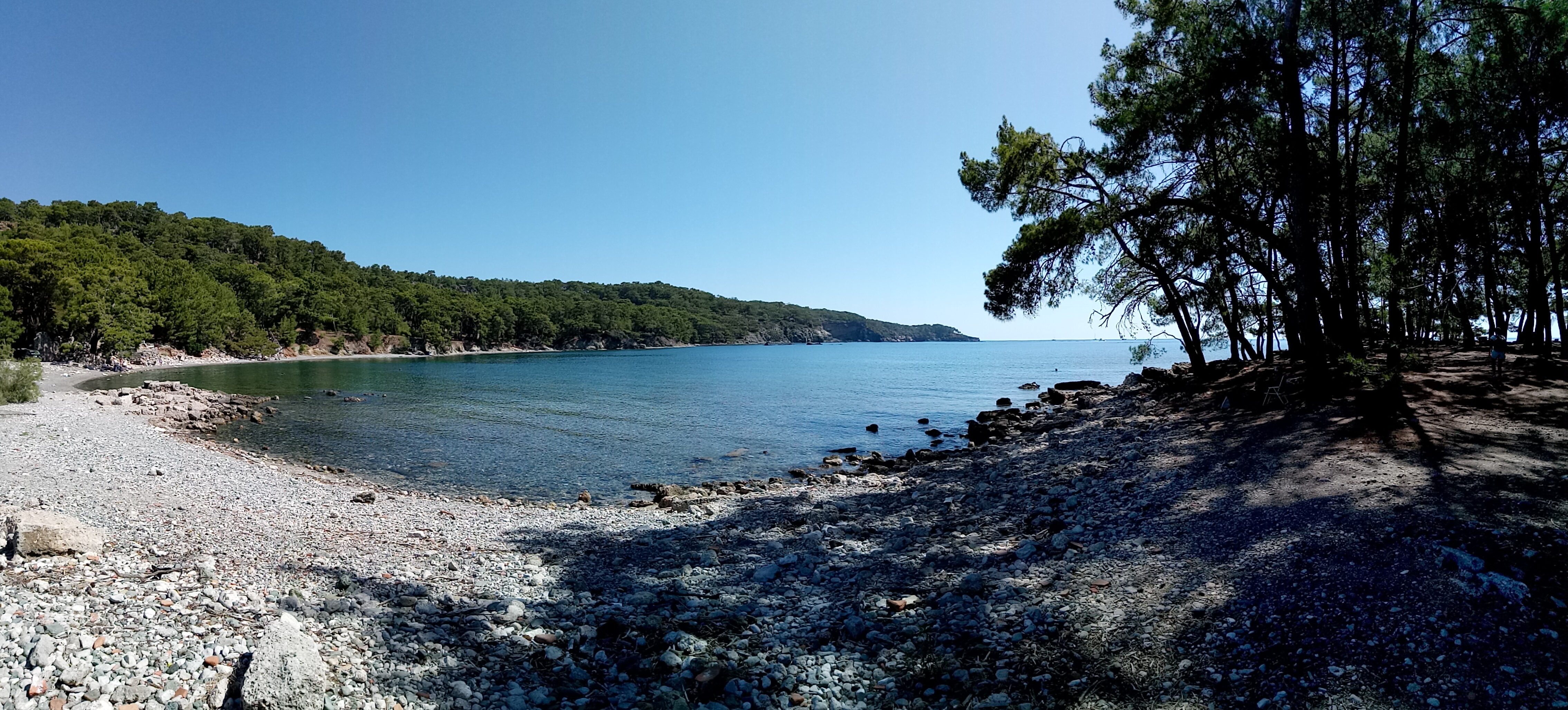 ну так фото ж мое, две галечные бухточки практически пустые, когда мы были никого вообще не было после обеда начали появляться турки с своими стульчиками и боксиками, одна песочная бухта то там приходят туристические корабли они там на глубине купаются и некоторые в античный город и все. А так ничего нет, что бы смыться от соли турки с собой воду везут в 5л бутылях. и на стоянке авто стоит аля палатка кафе, все только море, природа и античный город, вода прозрачная и теплая. на фото тот что песчаный там люди есть, но и то мало. А там где первое фото так вообще ...))