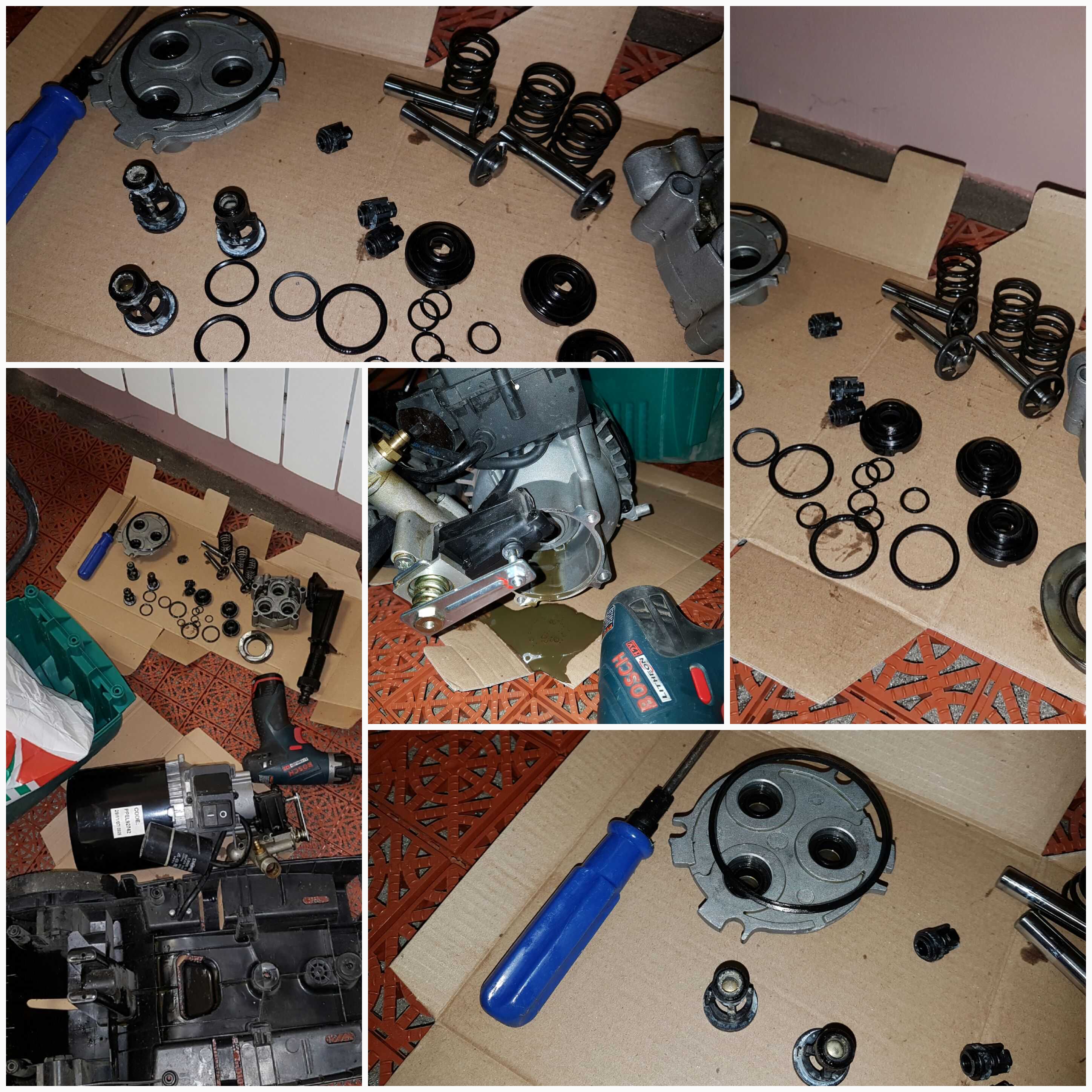 Мойка Bosch Aquatak 1200 Plus, возраст лет 6, эксплуатация домашняя. Все работает, моет, но начало течь масло из неё после каждой мойки. Решил разобрать, вроде бы все целое (резинки), масло ещё оставалось чуть, ничего не подгорело. Просто собрать как-то тупо наверное, масло ведь текло... Может таки заменить резинки какие, ремкомплект?