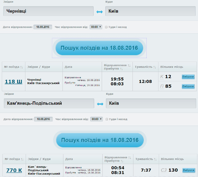Нужно купить билеты на 18-е августа на Черновицкий поезд, но от Каменец-Подольского...Но сайт ЖД этого делать не дает - от Черновцов и от двух следующих станций билеты есть, а с Каменца уже кагбе нет.. ..подсовывают вместо этого "Подильський экспресс" с исключительно сидячими местами....Как с этим бороться?