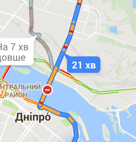 Міст закрито вже 3-й місяць. Спочатку гугл не знав про перекриття, можна зрозуміти. Але ж зараз судячи із знаку на карті знає. Але настирливо пропонує все-одно їхати через нього. Маршрут