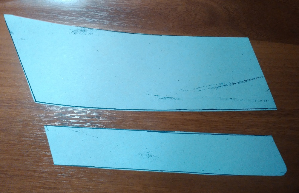 Чертеж сейчас на работе. Есть картинка. Примерные размеры меньшей детали 263х43 мм, большой - 302х85 мм.