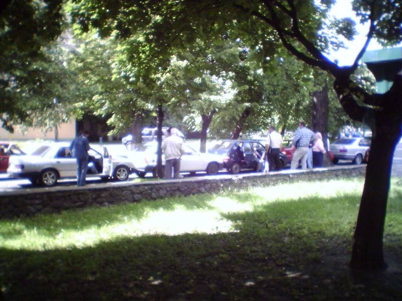 Случилось это в воскр. (11.06) на маленькой улочке между Мельникова и Герцена (сзади парка им. Котляревского). Праздник, пусто на дорогах и только на этом пятачке была сфоткана (извините, что плохо) авария из пяти авто. Как не видно на фотке - меньше всего пострадала первая автивка (бэха), хуже всего пришлось задним (у последней пробит радиатор, нет фар, и т.п.).