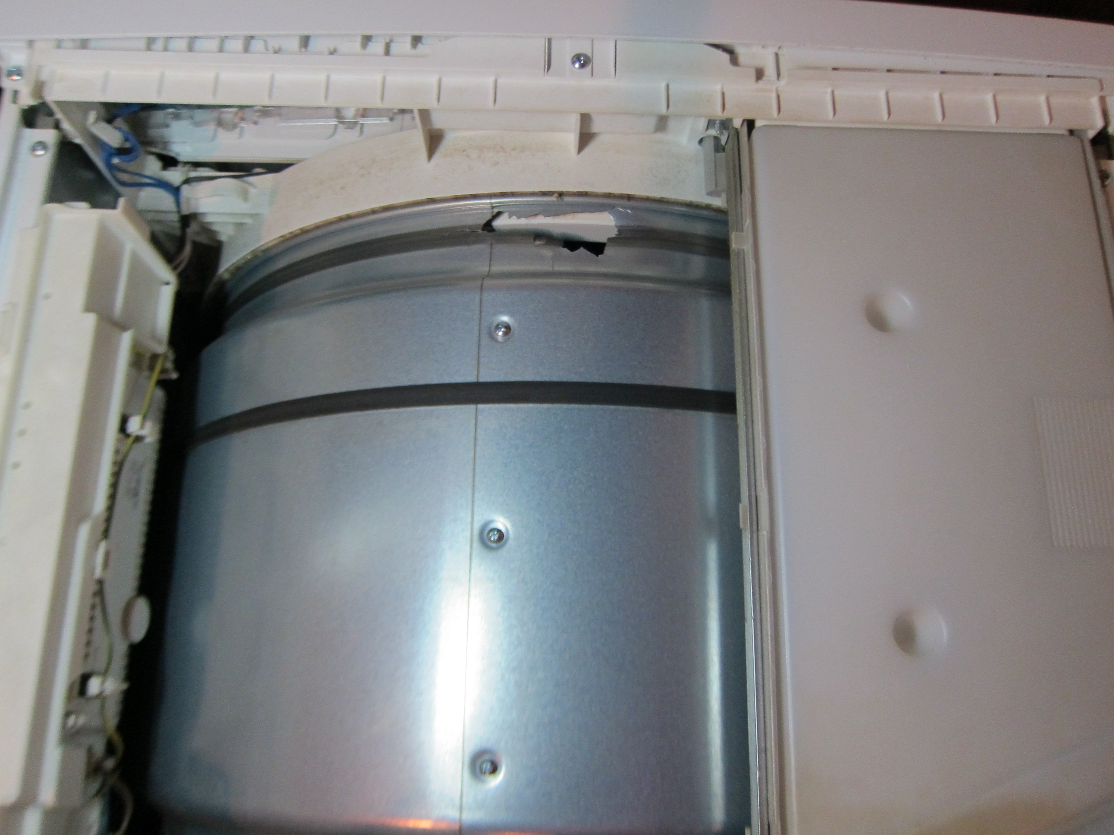 К слову, должен сказать, что и бош-сименс года эдак 08-09 тоже от этого страдали. Где то у меня есть такой же барабан, лень искать что бы сфоткать. В этом месте, где ходит ролик, самая нагруженная точка. Если перегрузить, то результат будет плачевным.