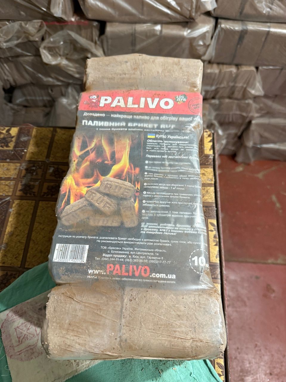 Почав шукати де ж їх замовити - виявив, що палета таких брикетів (~960кг) коштує на зараз десь +/- 12 тисяч гривень + доставка 500-700 гривень за палету. Замовив їх через компанію Palivo - взяв із запасом. Почав їх розбирати-перекладати на склад - а вони якісь зовсім не такі, які були у мене на пробі: самі брикеті темніші, сильно пилять, перефасовані в целофанові кульки без етікеток, ці кульки рвуться від ваги брикетів... І лише 5-6 пакетів з 3 тонн типу оригінальні в плотній плівці з етікеткою. Думаю ну це лише зовнішній вигляд - не страшно. Спробували їх тиждень використовувати - таке собі( більше тліють, ніж горять, жару дають мало, вироблені наче із сміття