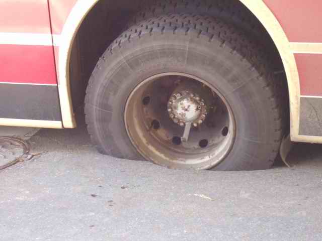 На Мельникова тоже похожая фигня, только слава богу на тротуаре. Думаю что не рассчитан асфальт у нас на осадки, морозы и повышенную жару...