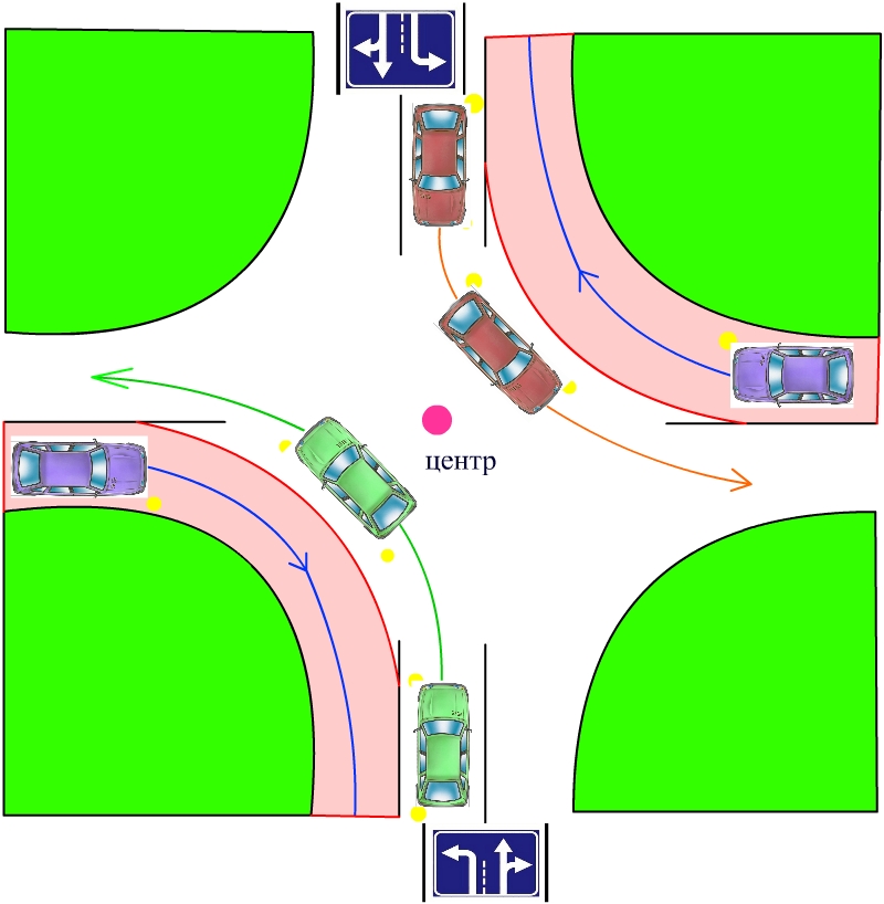 Хороший пример. Центр перекрестка - не панацея. Нужно просто адекватно реагировать "на изменение дорожной ситуации".