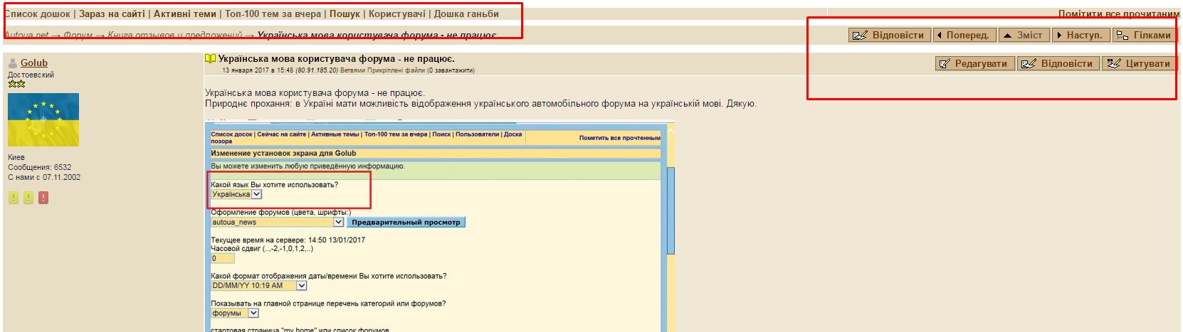 Українська мова користувача форума - не працює. Природнє прохання: в Україні мати можливість відображення українського автомобільного форума на українській мові. Дякую.