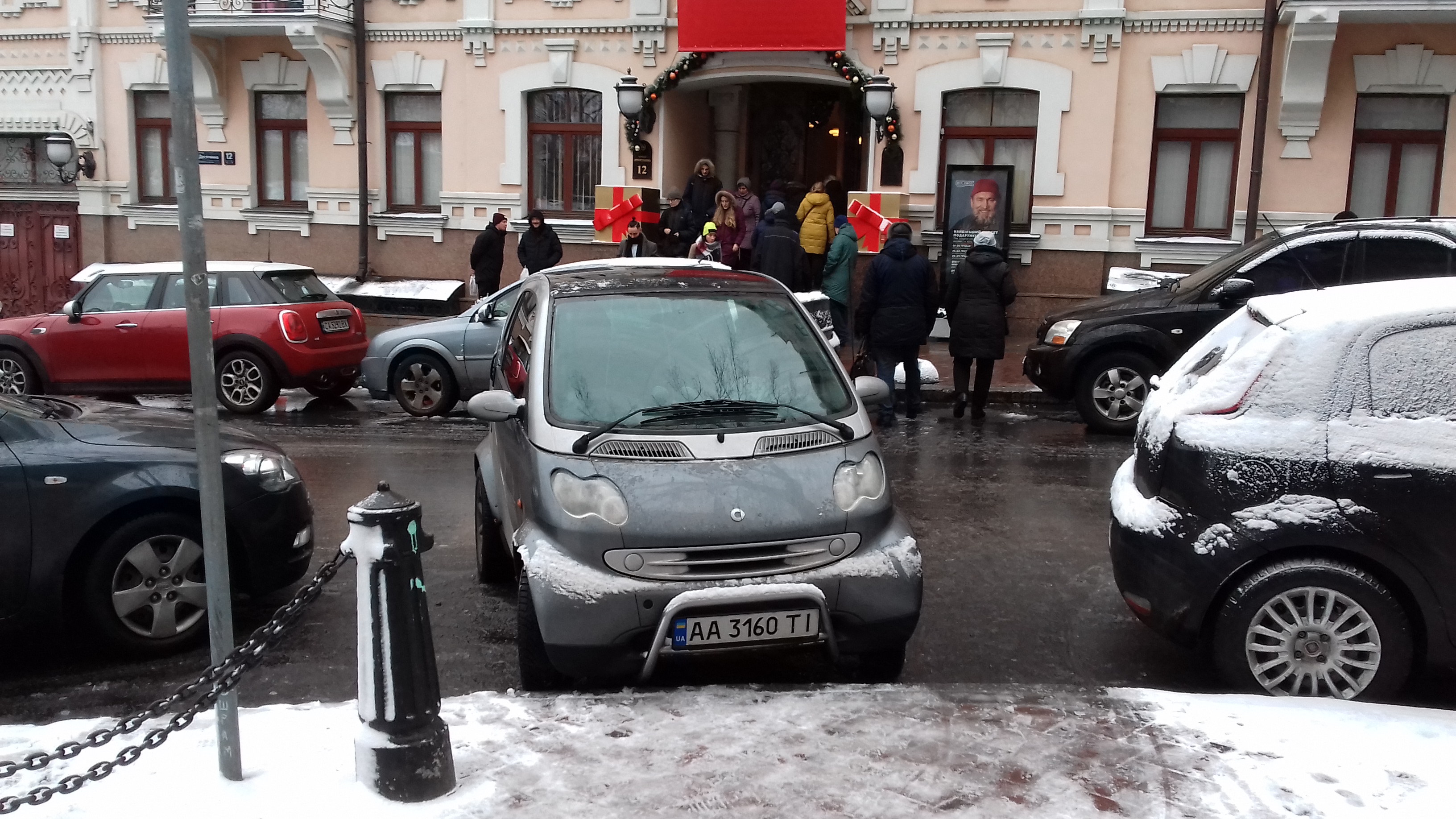 то что Смарт стоит в зоне действия знака 3,34 становится ясно только после того как пришлось зазгуглить обозначенное место, а на фото только столбик от этого знака красуется...