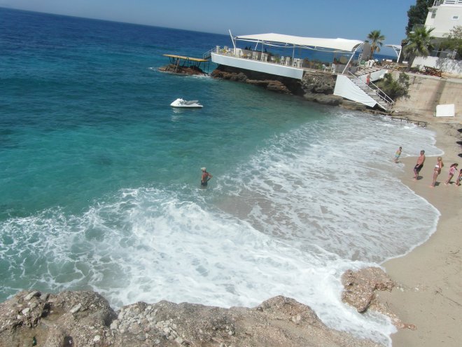 8 день 25.06.2016. Нарешті зранку ми їдемо на море в Ксаміль. Стартуємо приблизно 08.30 і рушаємо східним берегом до Светі Наума, прикольний монастир до якого променад з сувенірними лавками, ресторанами і пляжем, подивились, покупались з молодшим сином і рушили в Албанію дорогою SH75 – досить складна дорога і новачкам я б її не пропонував, хоча якщо їхати обережно і уважно «сладних» дорог майже нема. Ставив собі на меті ресторан з форелью і туземні терми , на жаль нікуди не попали, бо ресторан пропетляв наш навігатор з невідомої причини, потім тре біло розвертатись і екіпаж на голосуванні вірішив «не треба». А терми не схотіли, бо вже скоро море там і будемо купатись, ну то таке- буває). Неприємна частина дороги після Корчі- ремонт, насип утрамбований хвилею і їхати по ньому можна тільки 20-25 км на годину і таким чином хвилин 40-45(( не сподобалось . В горах купив чудової черешні по 150 лек –кіло (гроші зняли в Корчі в банкоматі).Після перевалу нас переслідувала горна річка,яка все ж таки виявилася не придатною до купання, бо дуже стрімка ікамениста Друга половина дороги не складна, приємний серпантинчік, тільки останній перевал перед Сарандою був в супроводі дощу , якого за перевалом в Саранді вже не було. Ось так ми опинились в Ксамілі, апарти «Амелія» 25євро дві кімнати, 45кв/м , великий балкон(букінг зі знижками за 40 днів до подорожі трапився) було досить зручно, нам сподобалось, до Лорі бич 5 хвилин. Підсумок 335 км за приблизно 10 годин 30 хвилин. Ось таким шляхом : https://goo.gl/maps/RZsq8QT4eQt