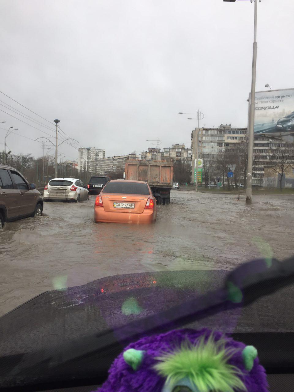 журчат ручьи.... Сьогодні о 12.40 - розвернули мене з-під Повітрофлотського - знов потоп в сторону Борщагівки. З'їзд з моста теж перекритий.