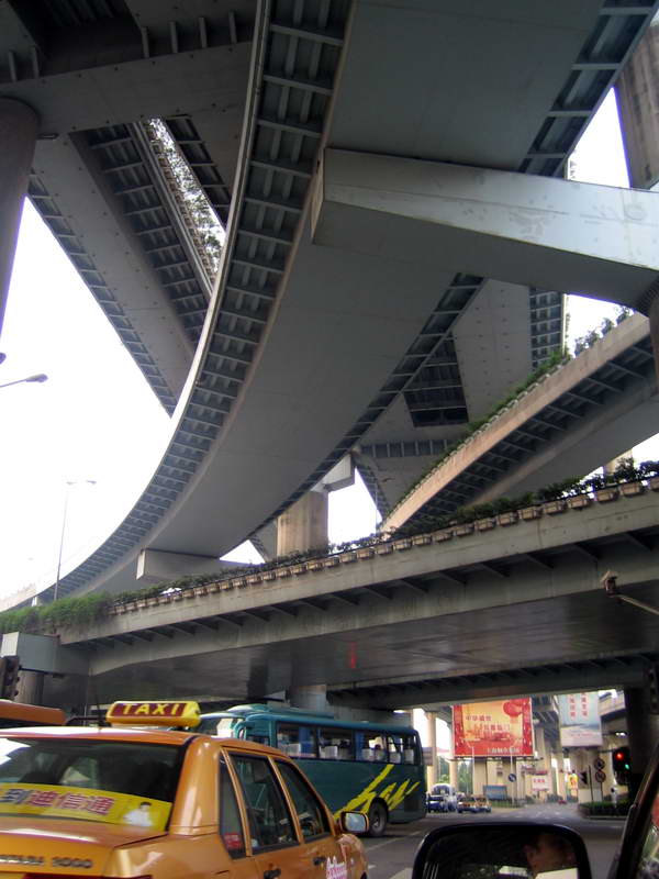 эх.... классные там дороги. фото - центр города Шанхай. строят такие развязки чтоб не было пробок и светофоров. В час пик небыстро но все двигаются.