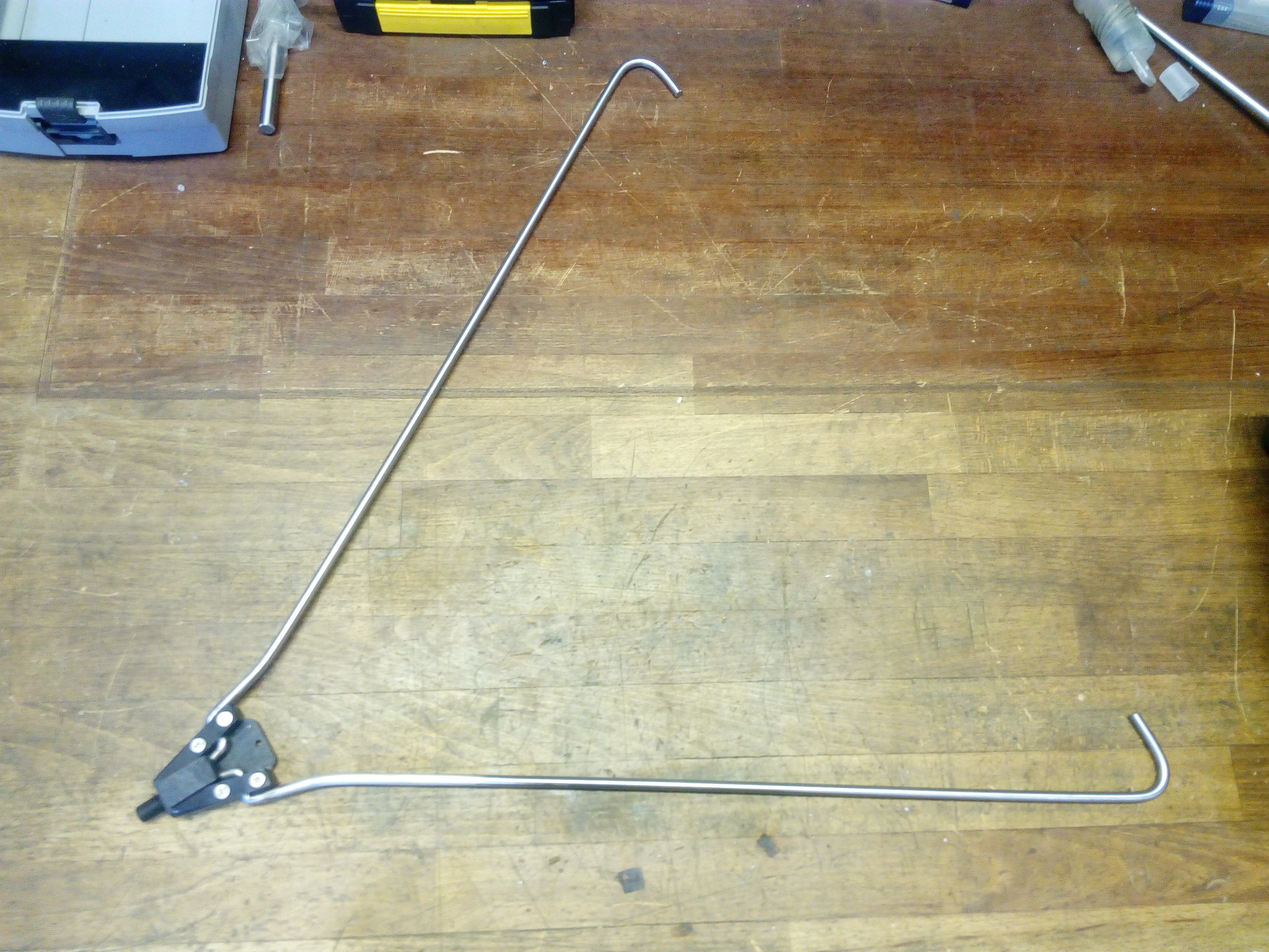 Решил сделать подсак. Походил, посмотрел что есть и выбор пал на китайский подсак. Механизм понравился. Решил сделать то же самое, но не из силумина, а из нормального закаленного алюминия Д16Т. Сфотал в магазине китайца, дома обрисовал в кореле, чтоб вычислить углы и примерные размеры. Потом нарисовали 3д модель и на станок. Потом это все на гальванику (анодирование) Прутки сначала взяли 6мм нержу. согнули, собрали. Тяжелая получилась голова. Прутки заменили на нерж трубку 6мм и вуаля, все супер. (на фото еще прутки, а не трубка) Получился треугольник со сторонами примерно 48см Теперь все супер. Осталось сетку пошить и одеть. Кстати, где ее можно купить?