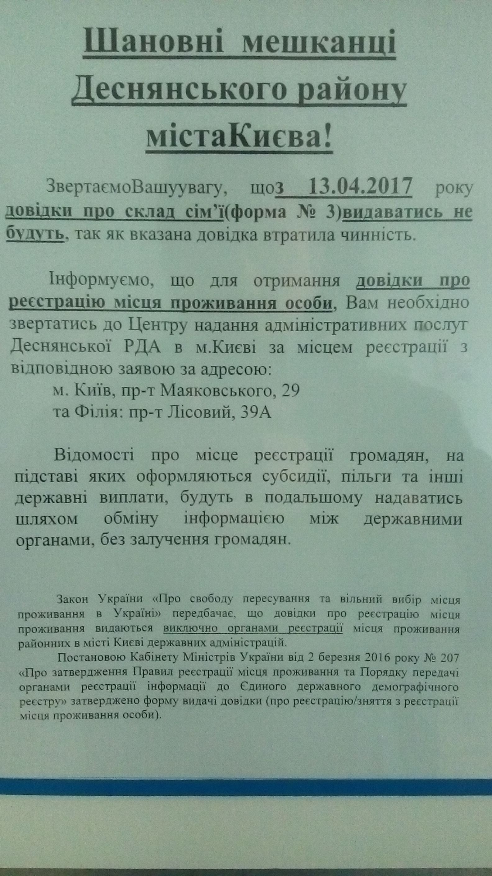 Дивно, що залишилась відсилка на центр надання адміністративних послуг, якщо потрібна довідка про реєстрацію. Чому б і цю довідку не відмінити?