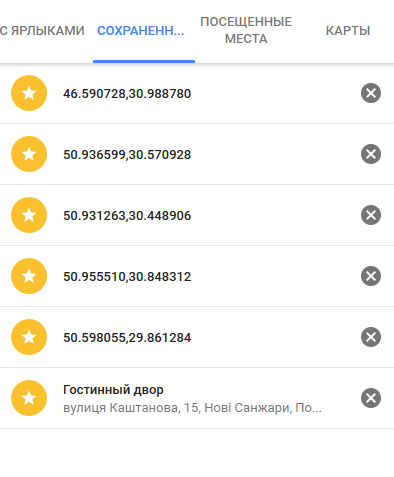 Вот такого я от Гугла не ожидал, сохранил я несколько мест по части автотуров по стране. В списке они выглядят так как в прикрепленной картинке. Я не нашел возможности, как переименовать. Поделитесь опытом.
