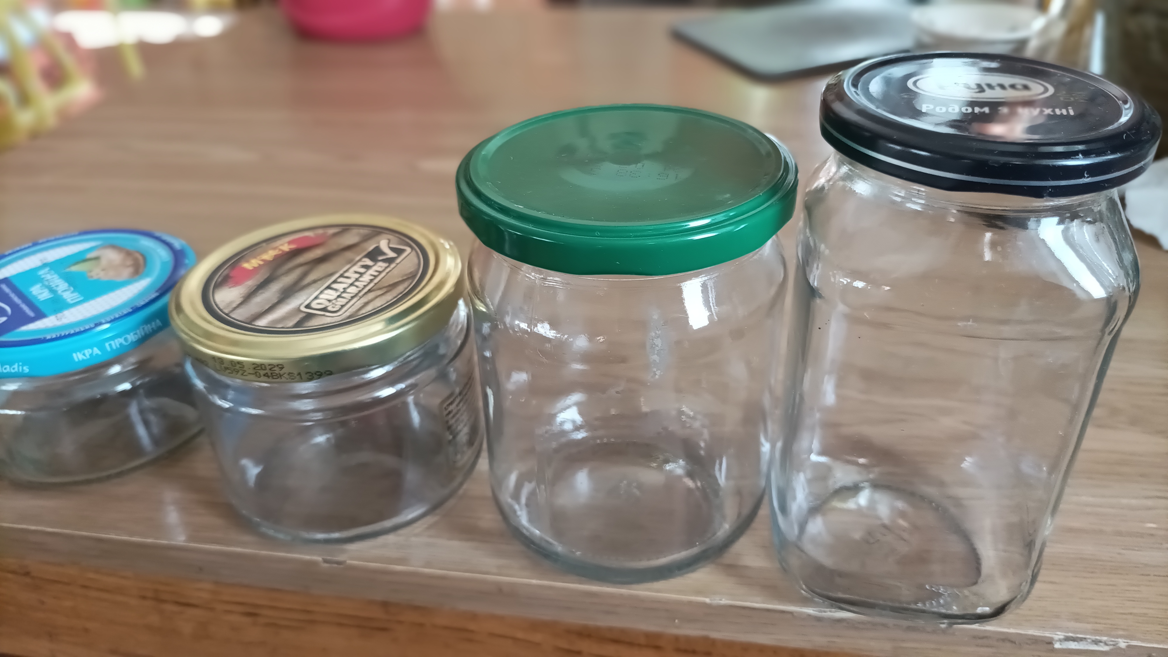 Віддам у хороші руки банки, ассортимент - на фото. Біля 35 шт. Переважна більшість - ті, що крайня з права (з-під "РУНА"). Банки вимиті, не биті, не крашені, з кришкою. Територіяльно - Залізничний район. Пишить у лічку. Заберіть, бо серце стискає викидати.