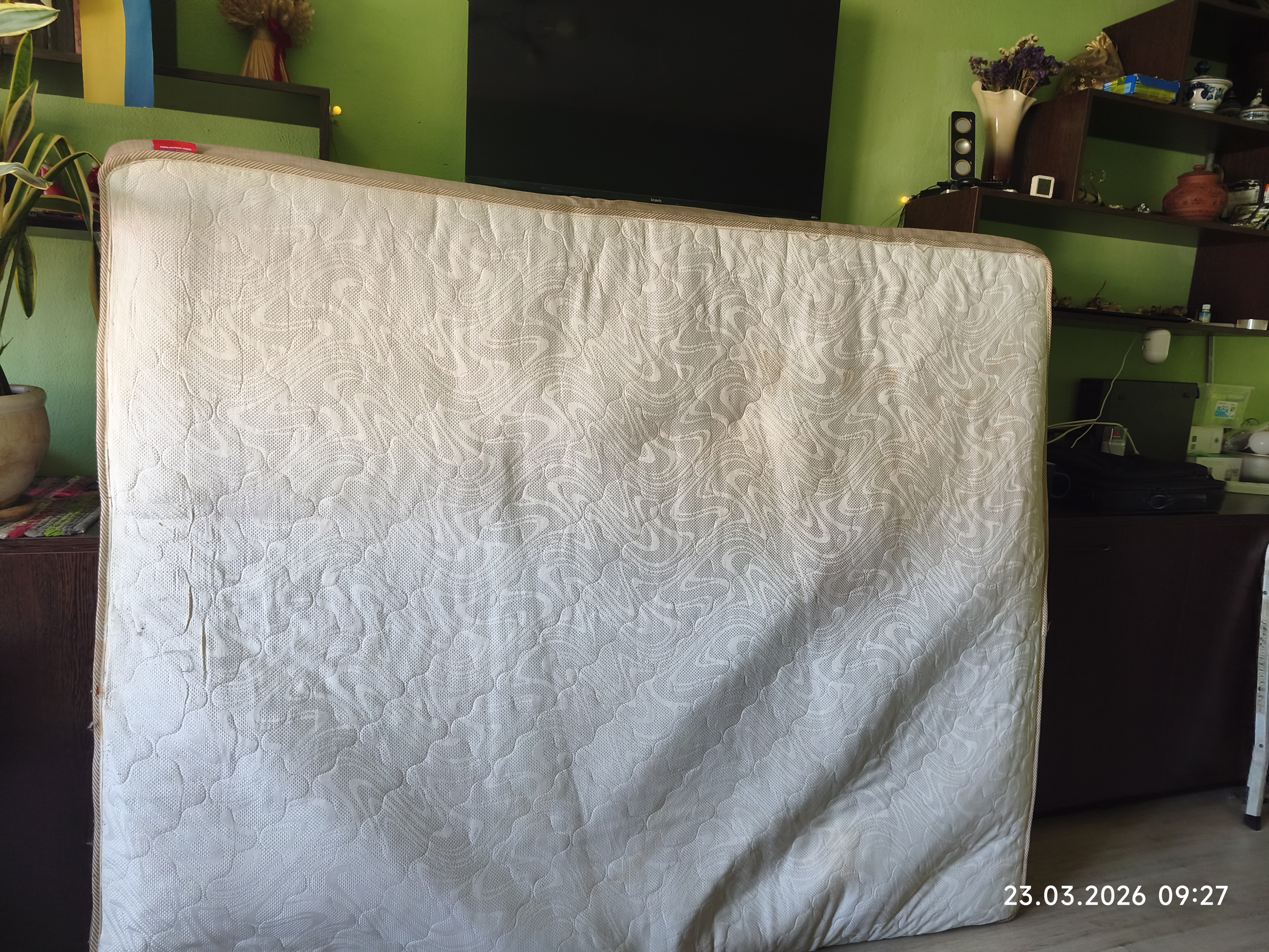 матрас 160*190 комусь треба? Якщо не помиляюсь то MatroLuxe Raff Fredo або Cosmo , точно пам'ятаю що на незалежних пружинах. Б.в пару років, але вже є пролежана яма, хоч і невелика, з одного боку. Пару днів терпить, бо новий тільки розпакували з вакуума, потім поїде на звалище, бомжі точно заберуть. Точну модель зможу подивитись тоді-ж. Може кому на дачу або замінити ще гірший. Не битий не крашений
