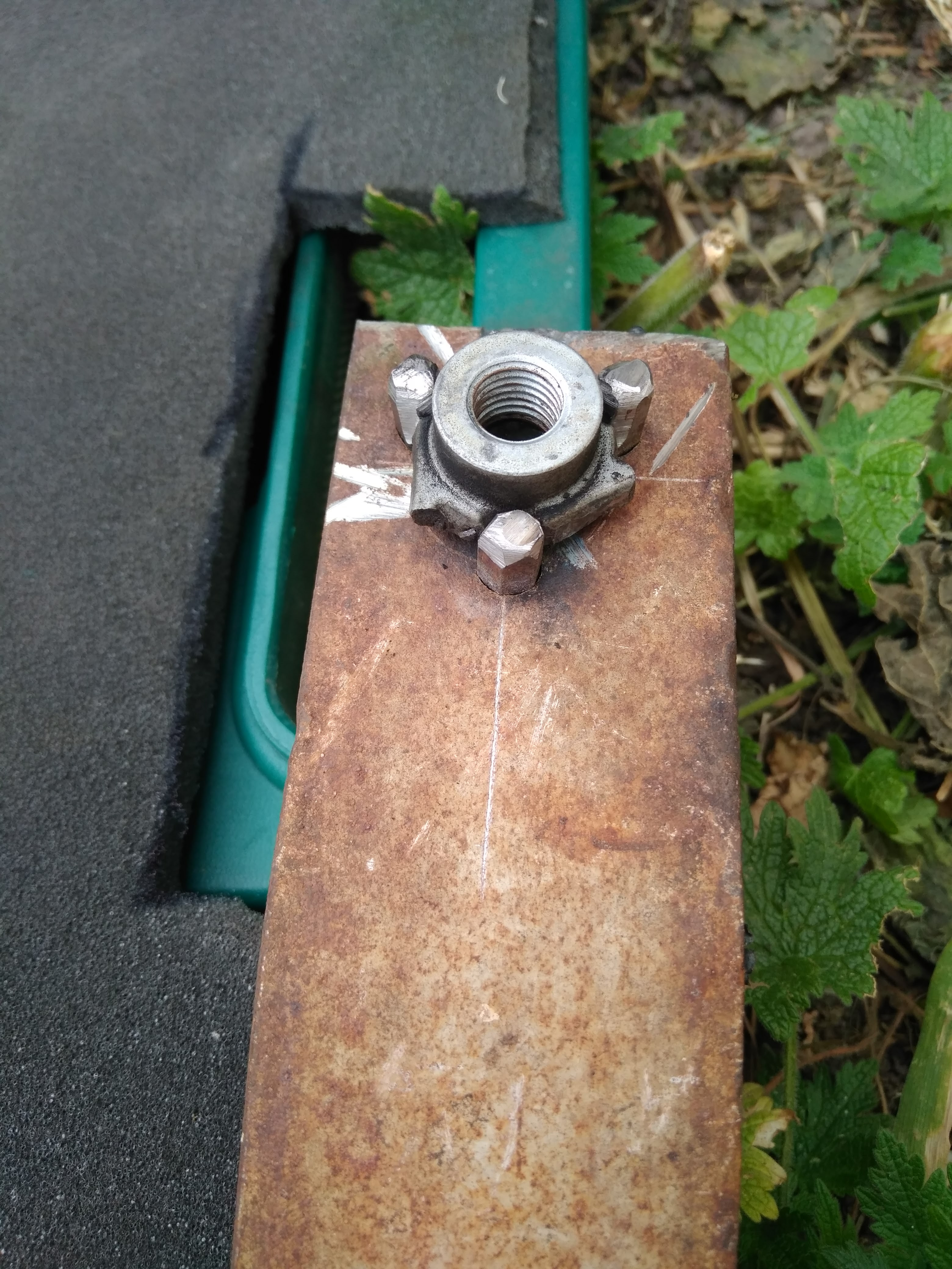Снял. Уголок, три старых биты, сварка, болгарка и готово. Фото приспособы и остатков пластины