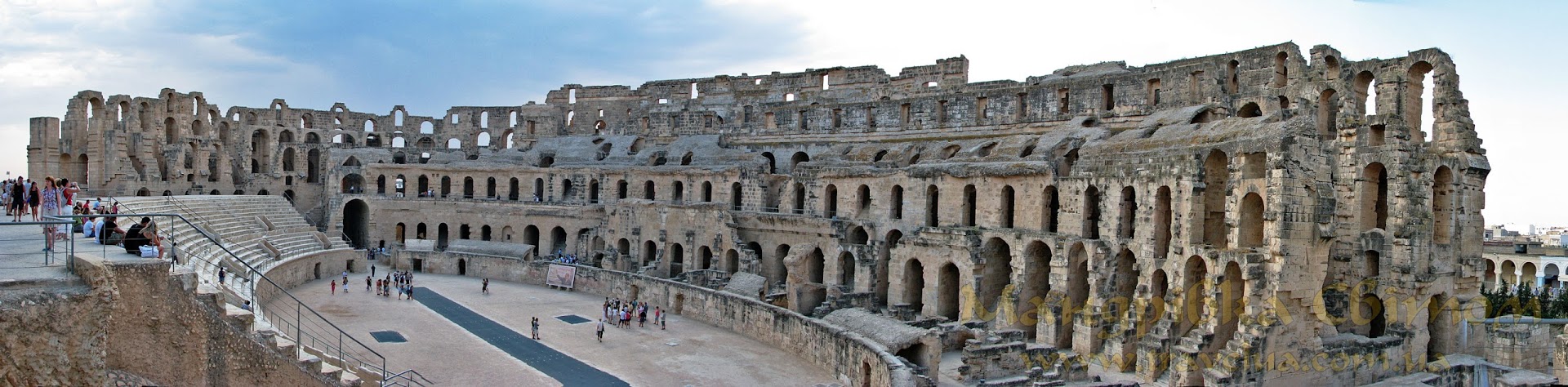 Амфитеатр (Колизей) в Эль-Джеме крутое место относиться в ЮНЕСКО