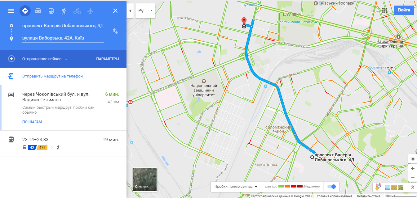 То, что гугл рисует достоверно пробки - это один аспект, красиво, да. Но он с легкостью прокладывает маршруты через двойную осевую на шестиполосной дороге. Например, прекрасный маршрут от Новуса на проспекте Лобановского до Космополита на Вадима Гетьмана. После такого гуглом пользоваться перестал.