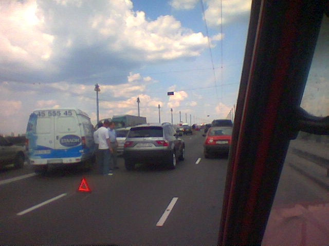 посреди моста на ДТП из нескольких машин на несколько полос. ГАИ еще нет, так что быстро не рассосецца. сообщил vvlaw